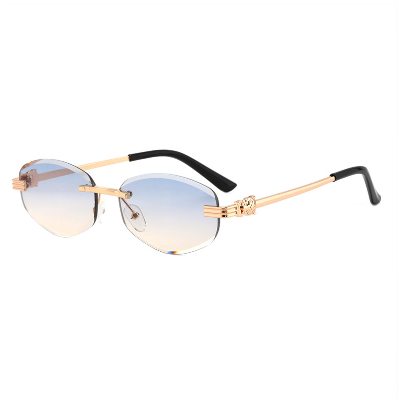 새로운 무테 선글라스 여성용 유럽 및 미국 스타일 패션 자외선 차단 선글라스 회색 금속 선글라스 pc