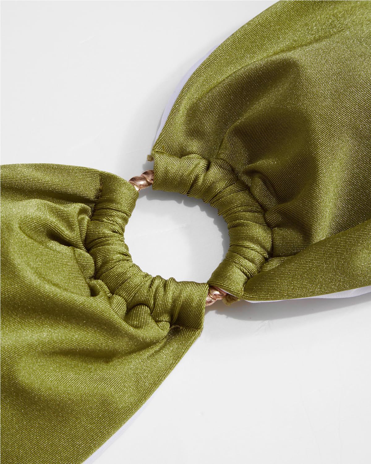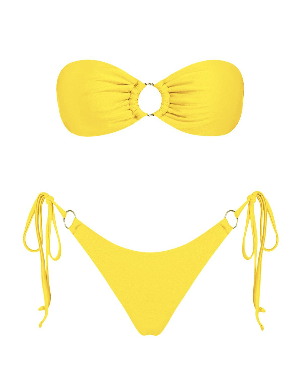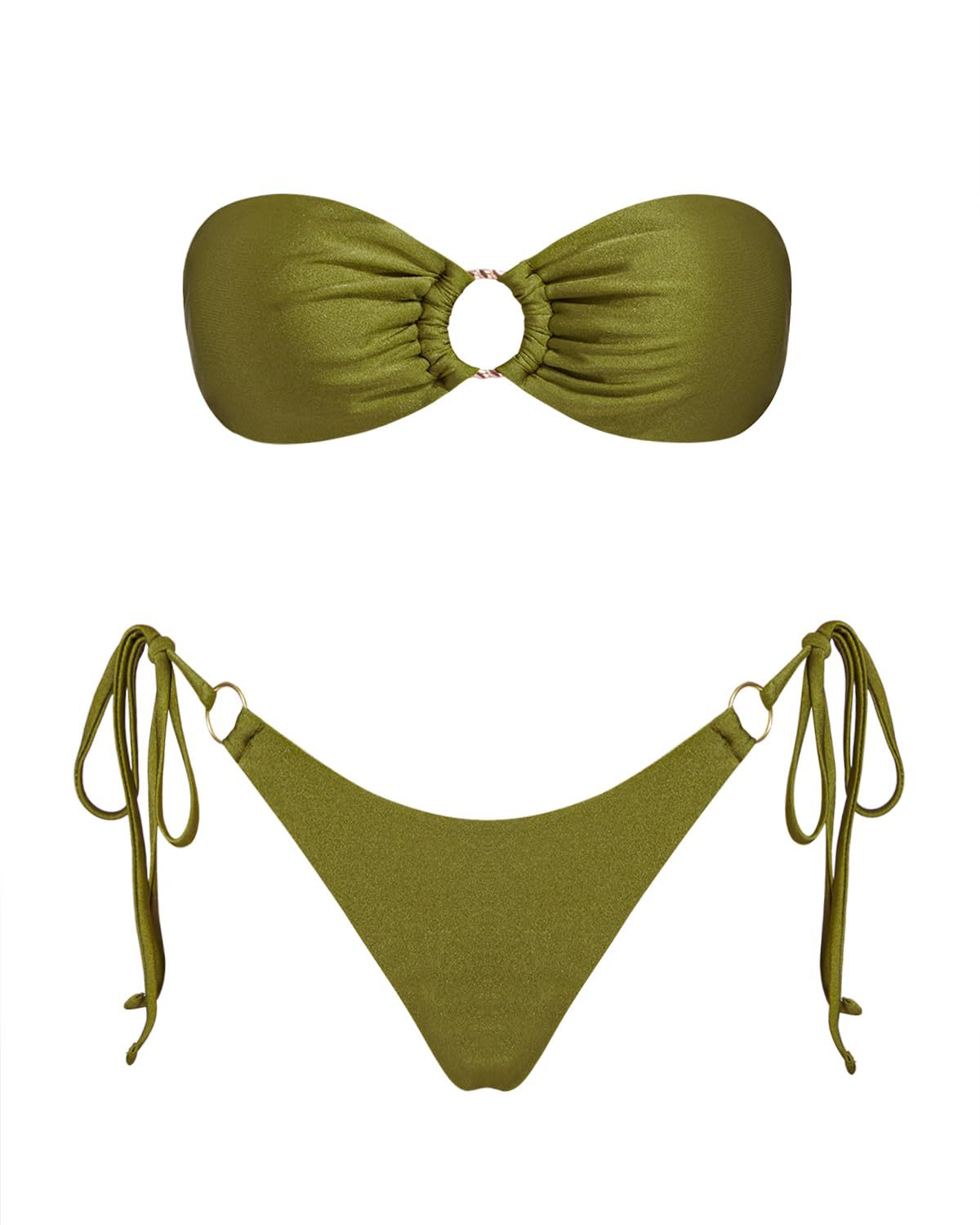 새로운 대외 무역 2025 비키니 세트 섹시한 끈이없는 여성 수영복 솔리드 컬러 스플릿 여성 수영복 비키니스토어 가기