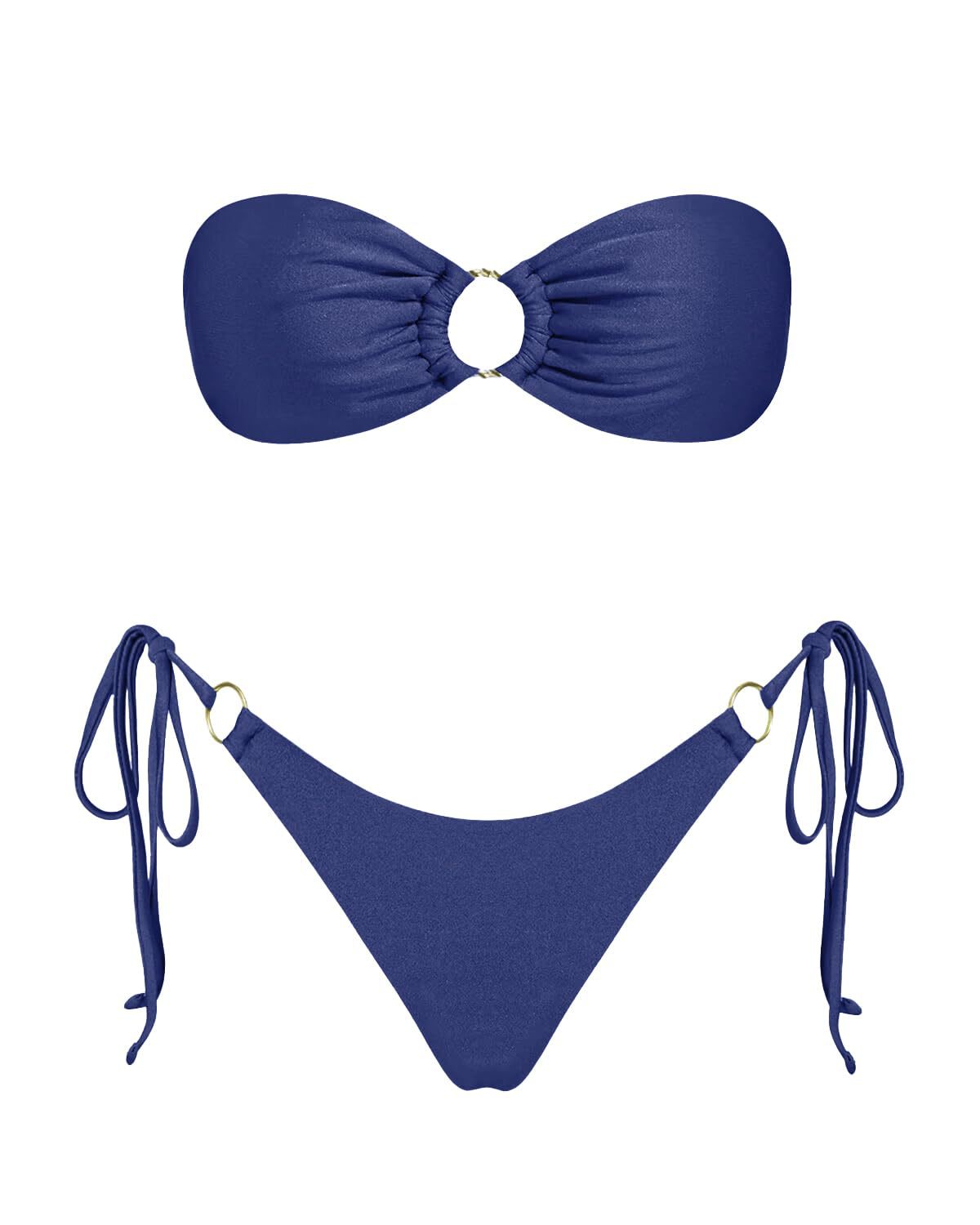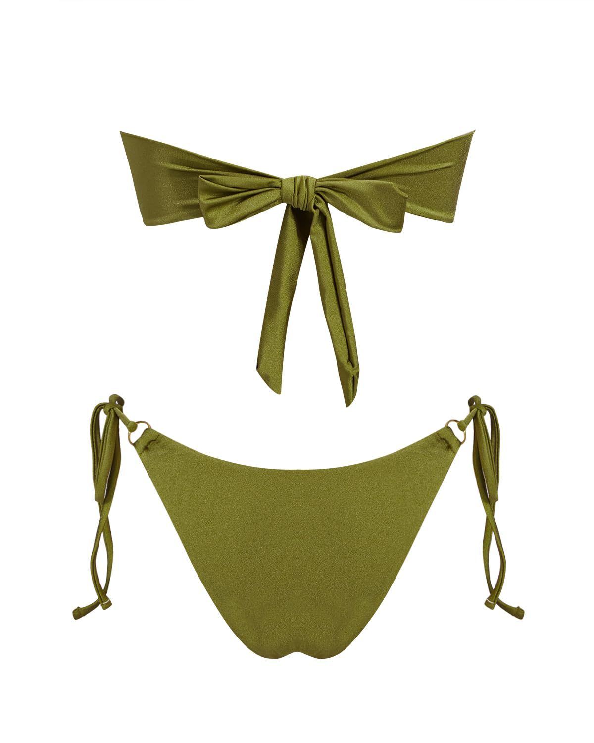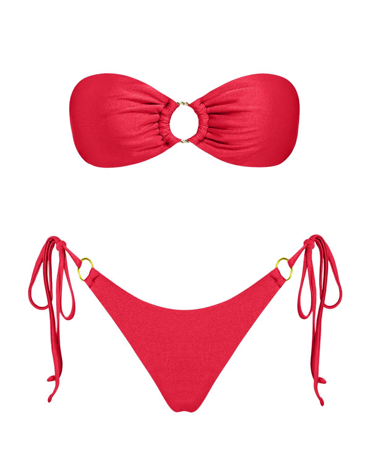 새로운 대외 무역 2025 비키니 세트 섹시한 끈이없는 여성 수영복 솔리드 컬러 스플릿 여성 수영복 비키니
