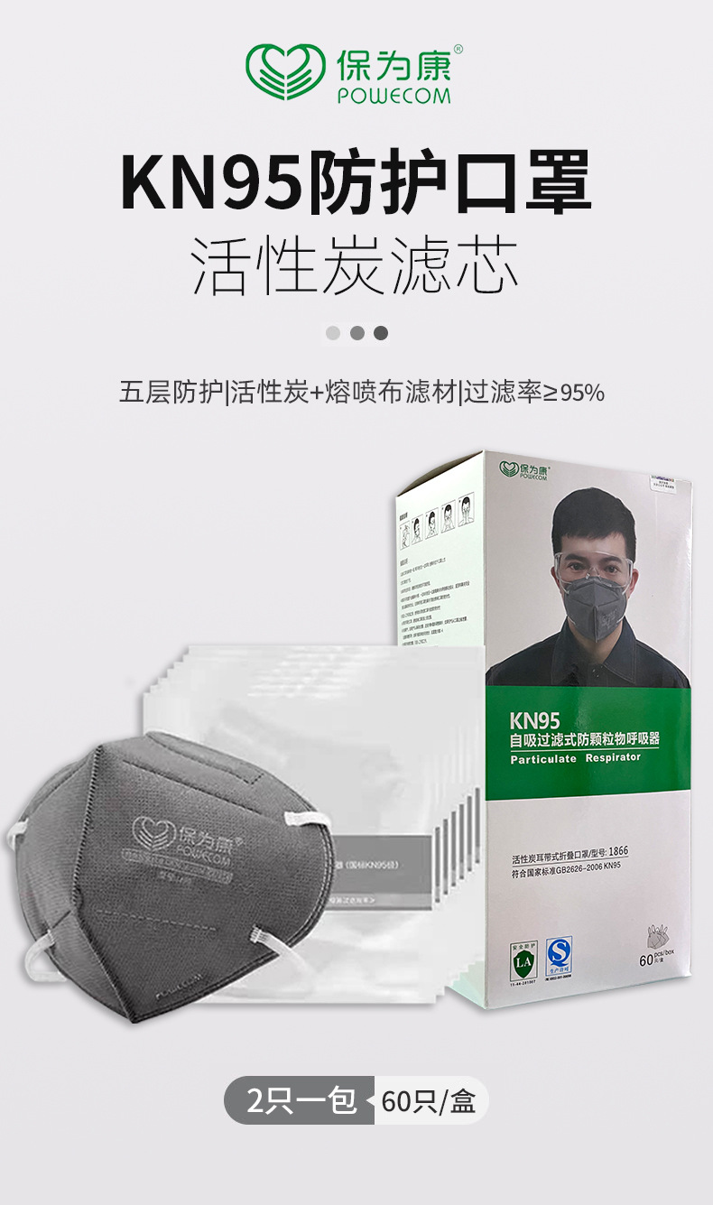 Kn95 활성탄 마스크 Baowei Kang 1866 일회용 5 층 방진 냄새 용접 3d 스테레오 블랙 남성용 마스크