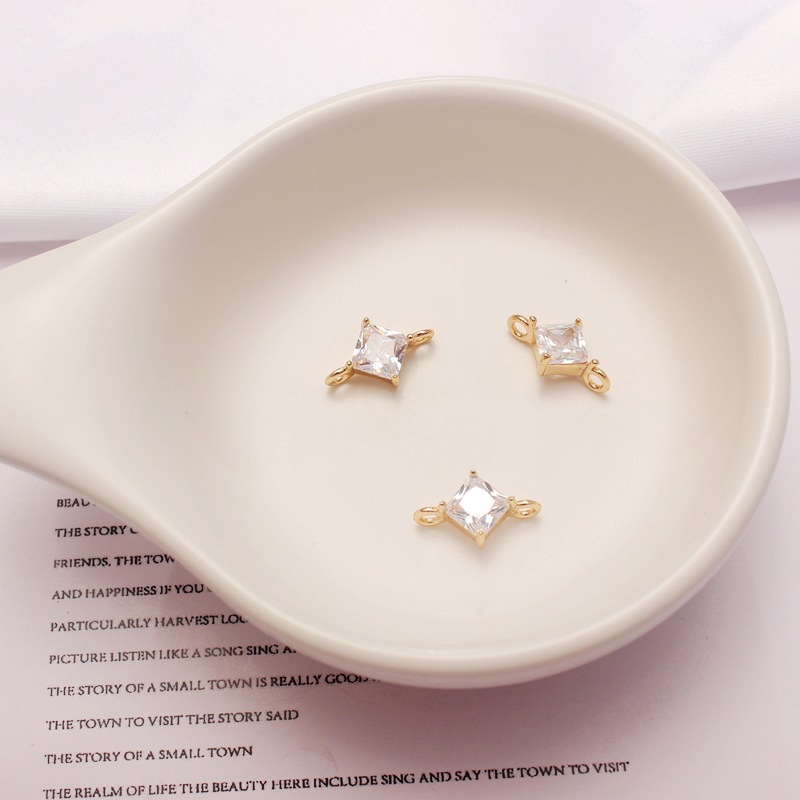 14K包金保色镶锆石菱形双吊镶贝鱼尾吊坠DIY手链项链手工饰品配件