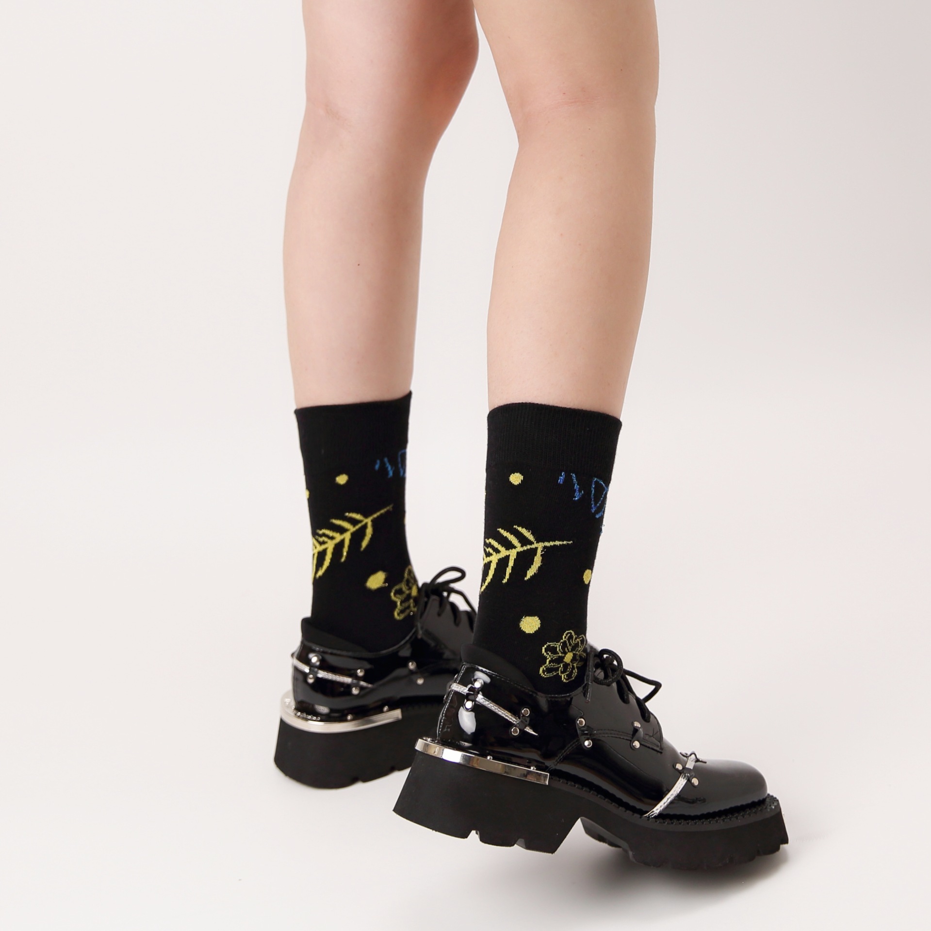 가을과 겨울 밝은 실크 자카드 잎 양말 여성 일본 빈티지 식물 꽃 중간 양말스토어 가기