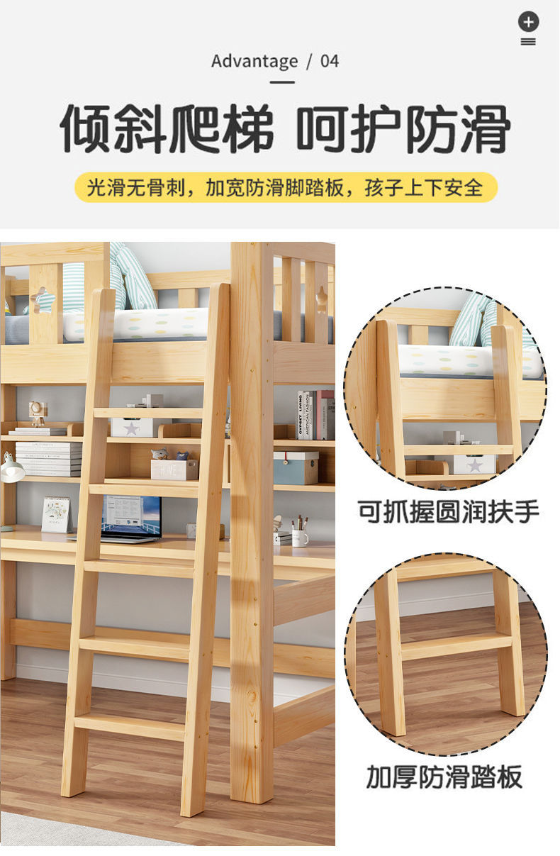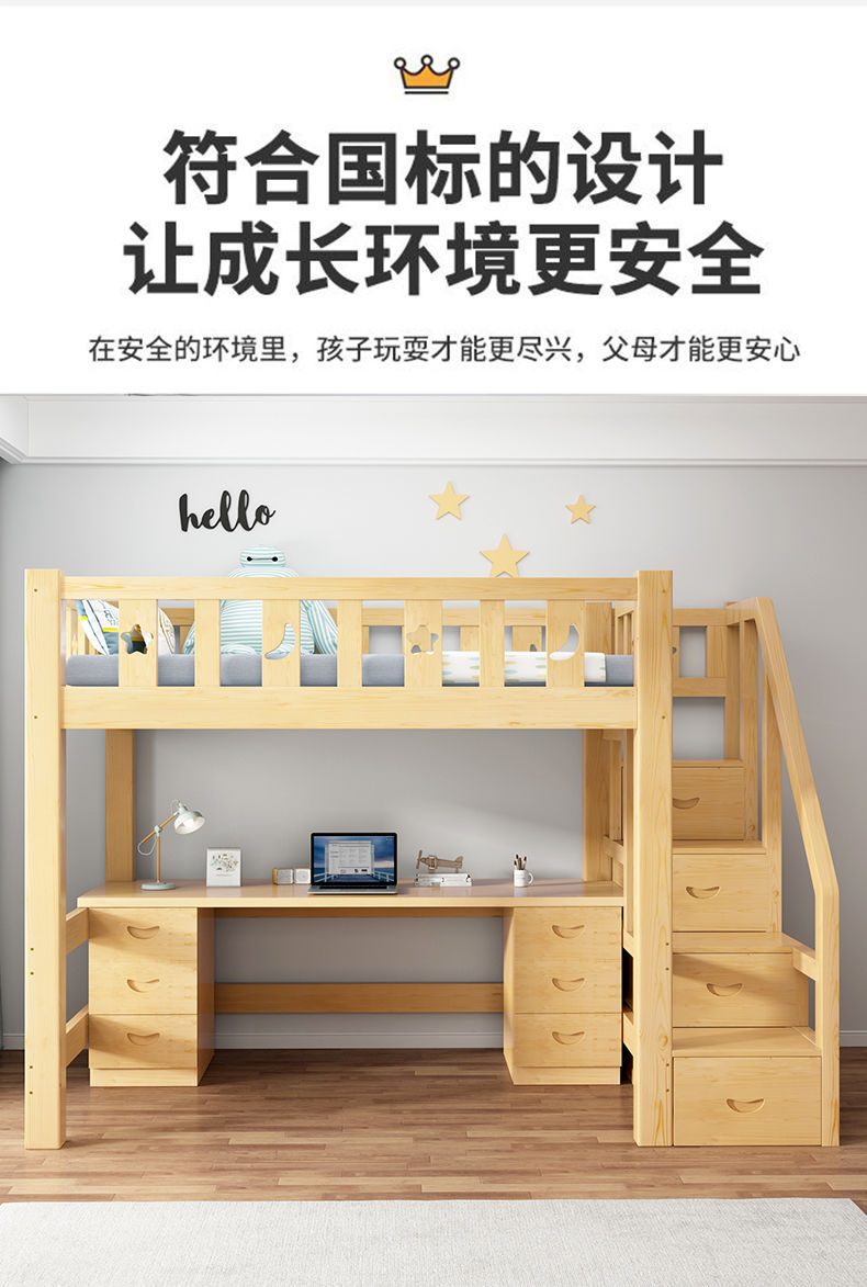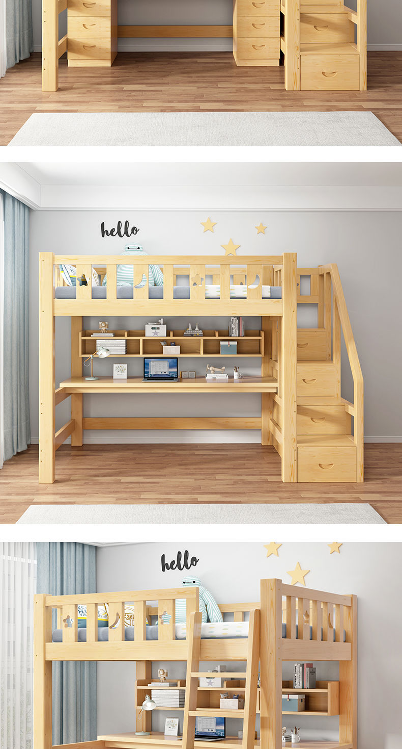 모든 단단한 나무 침대 테이블 상승 침대 다기능 침대 조합 침대 책상 높은 낮은 침대가있는 어린이 침대