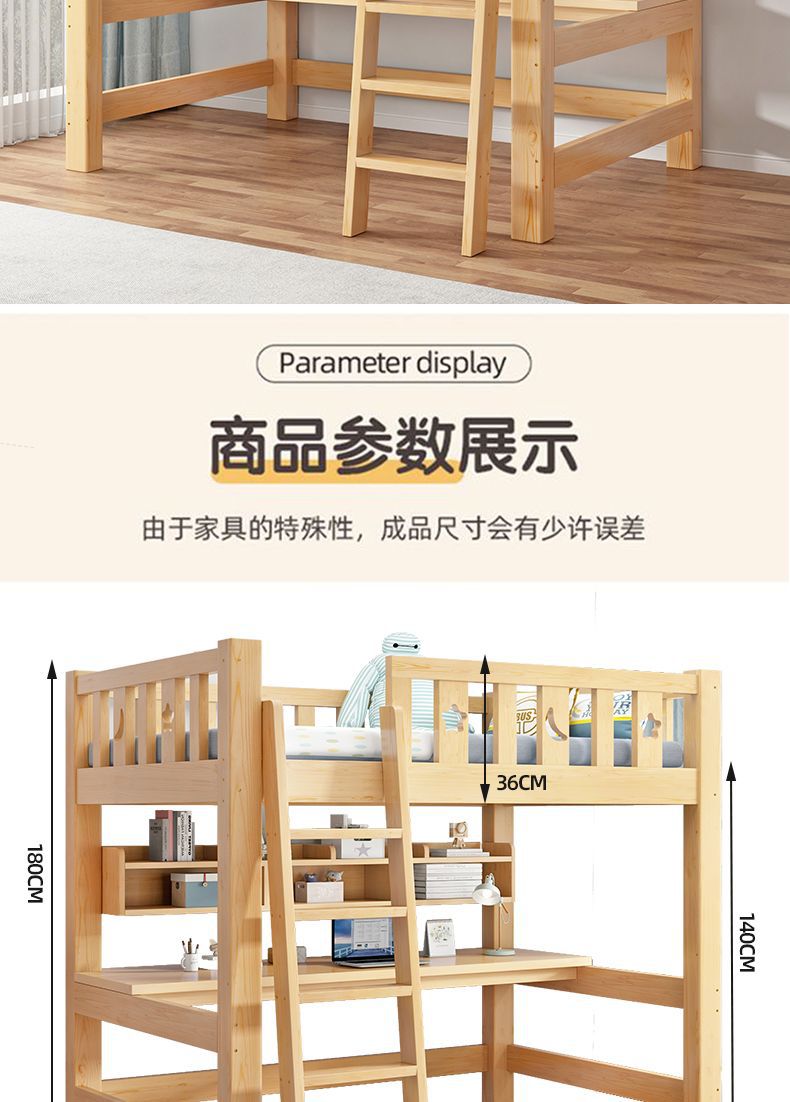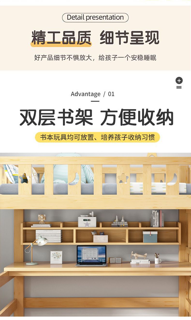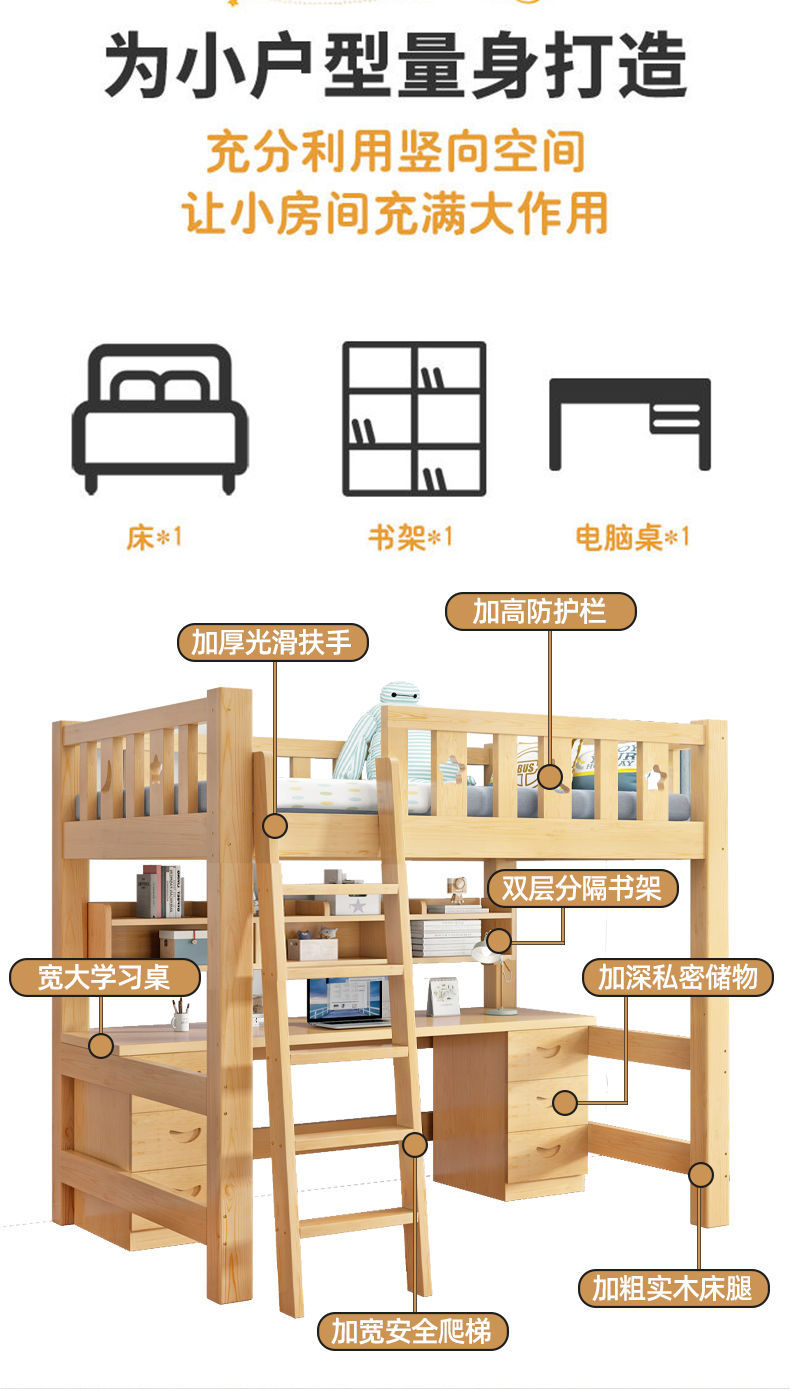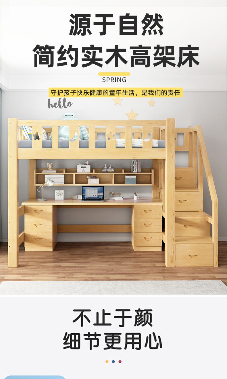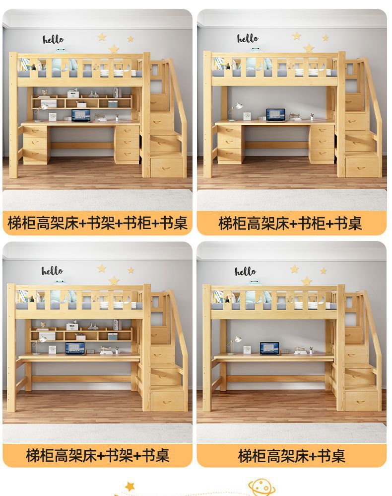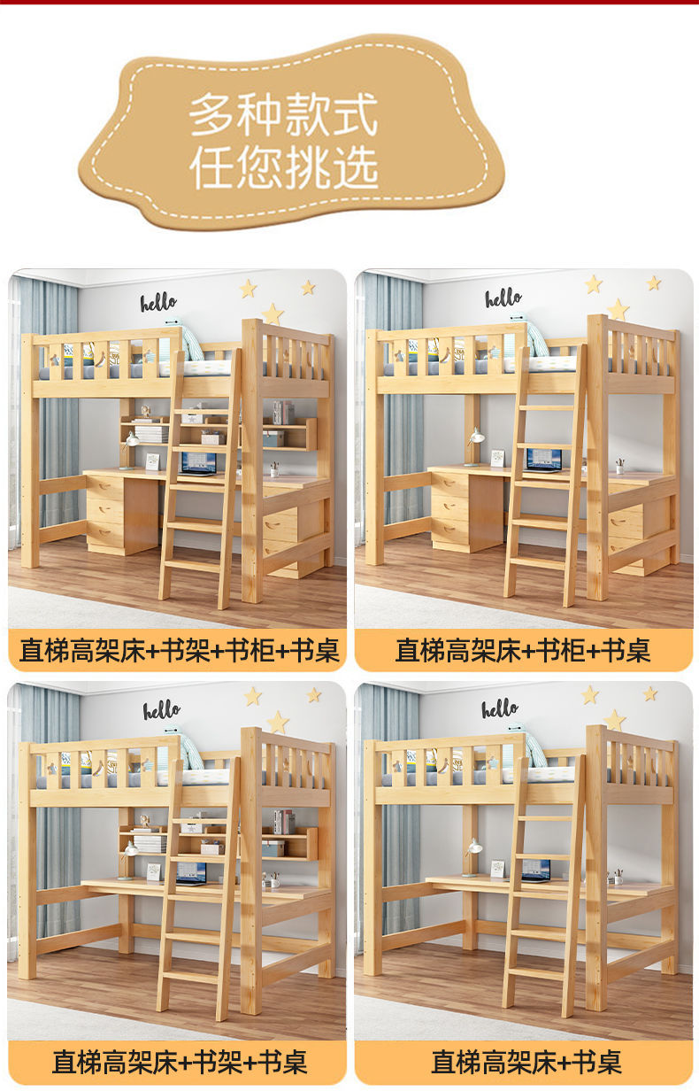 모든 단단한 나무 침대 테이블 상승 침대 다기능 침대 조합 침대 책상 높은 낮은 침대가있는 어린이 침대스토어 가기