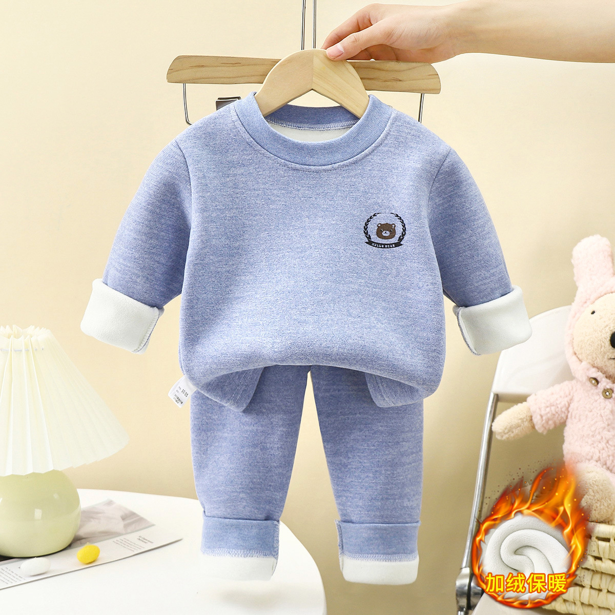 어린이 따뜻한 옷 세트 겨울 새 소년 속옷 기모 두꺼운 여자 겨울 아기 가을 겨울 어린이 의류스토어 가기