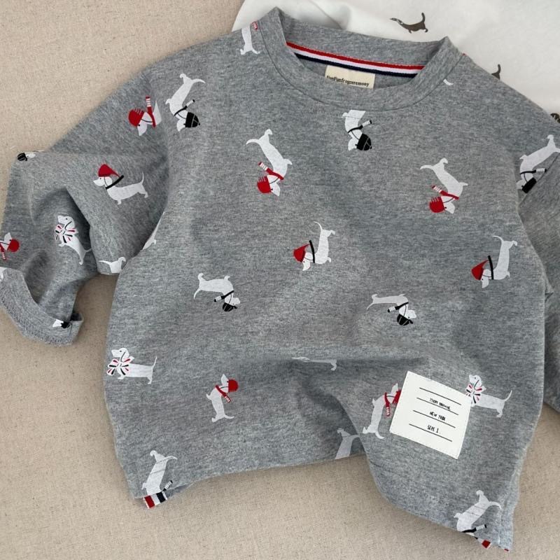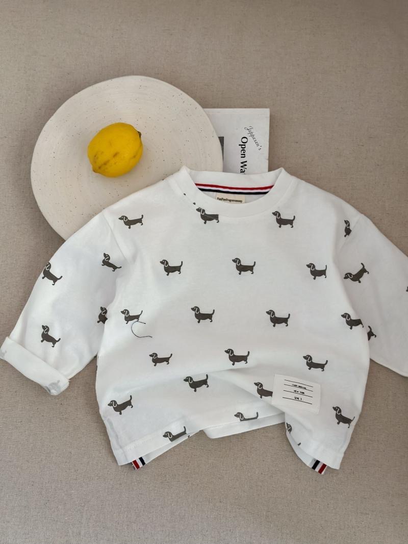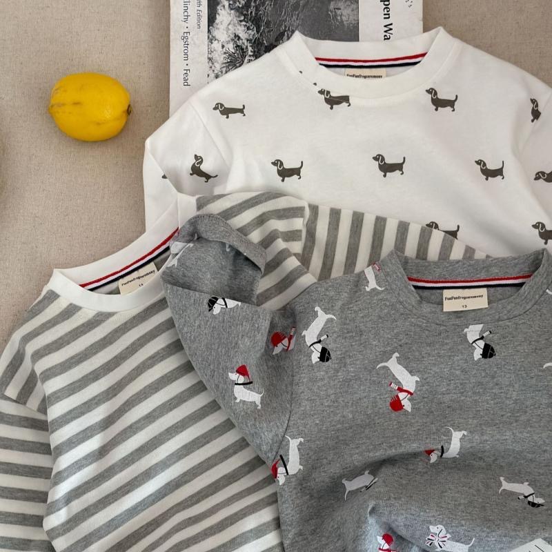 • 라이트 그레이 스트라이프 강아지 긴팔 밑단 셔츠