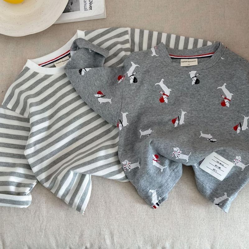 셀프로 보관하세요! 단독으로 입거나 이너로 입을 수 있어요! 한국 소년 소녀용 다용도 스트라이프 긴팔 티셔츠 어린이 만화 바닥 셔츠 가을