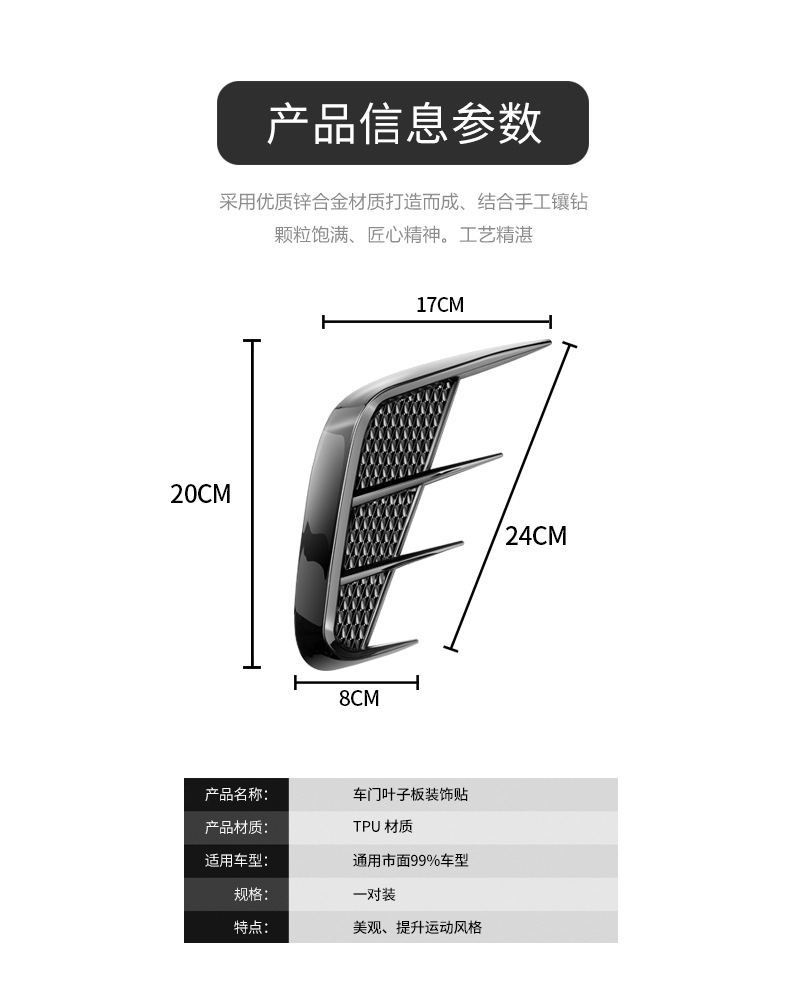 자동차 시뮬레이션 상어 가짜 측면 공기 배출구 수정 된 자동차 스티커 펜더 바디 장식 날개 범용 자동차 측면