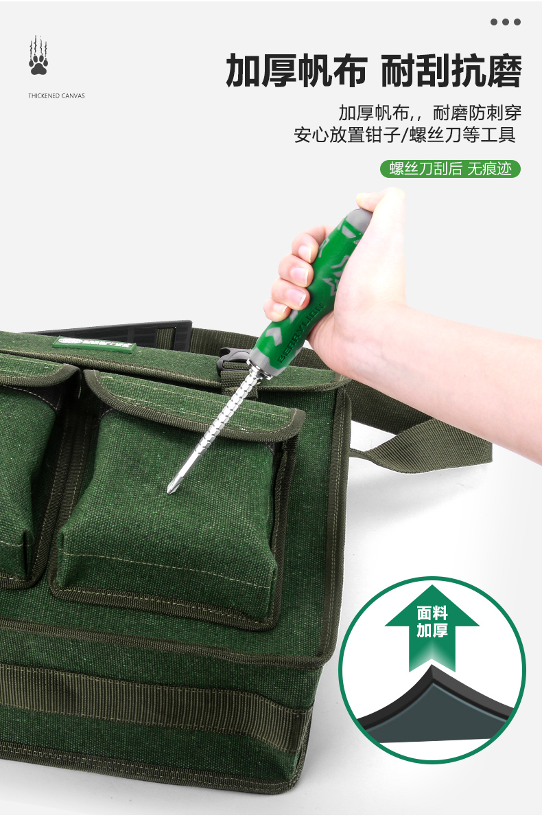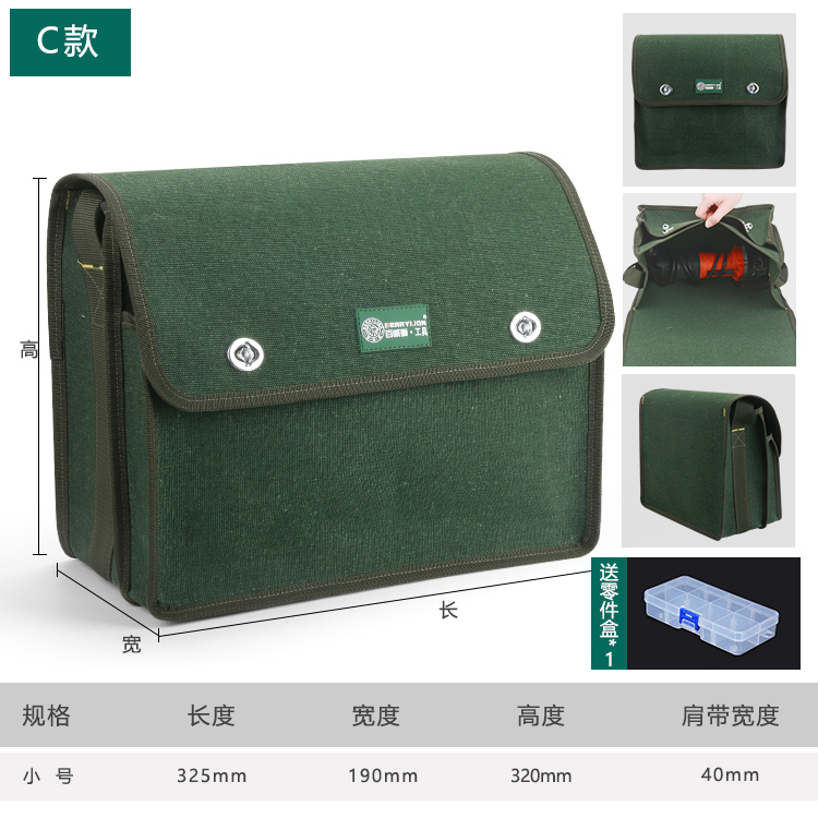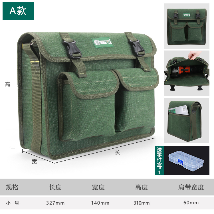 • 더블 레이어 캔버스 도구 가방(DGD235 소형)에는 부품 상자가 함께 제공됩니다.