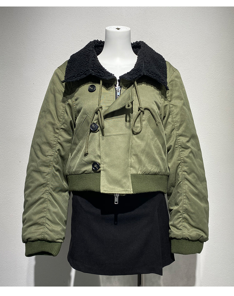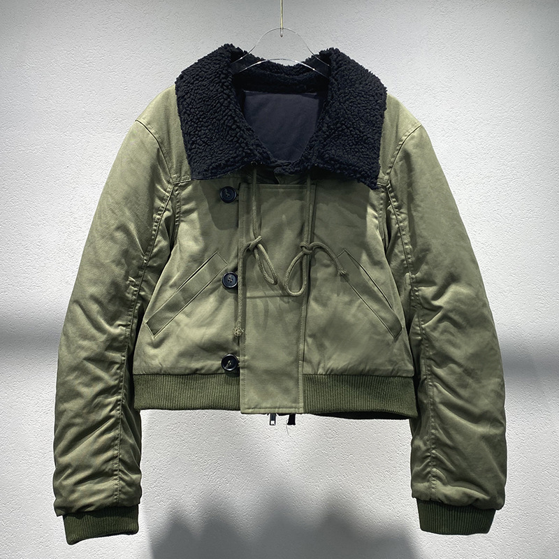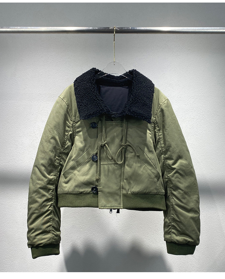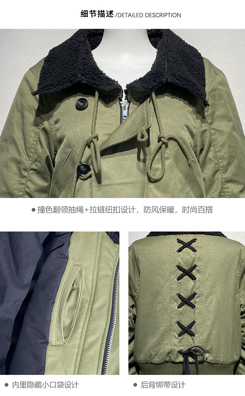 Now niche 2024 겨울 신작 대비 색상 모피 칼라 백 스트랩 라펠 캐주얼 재킷 여성용