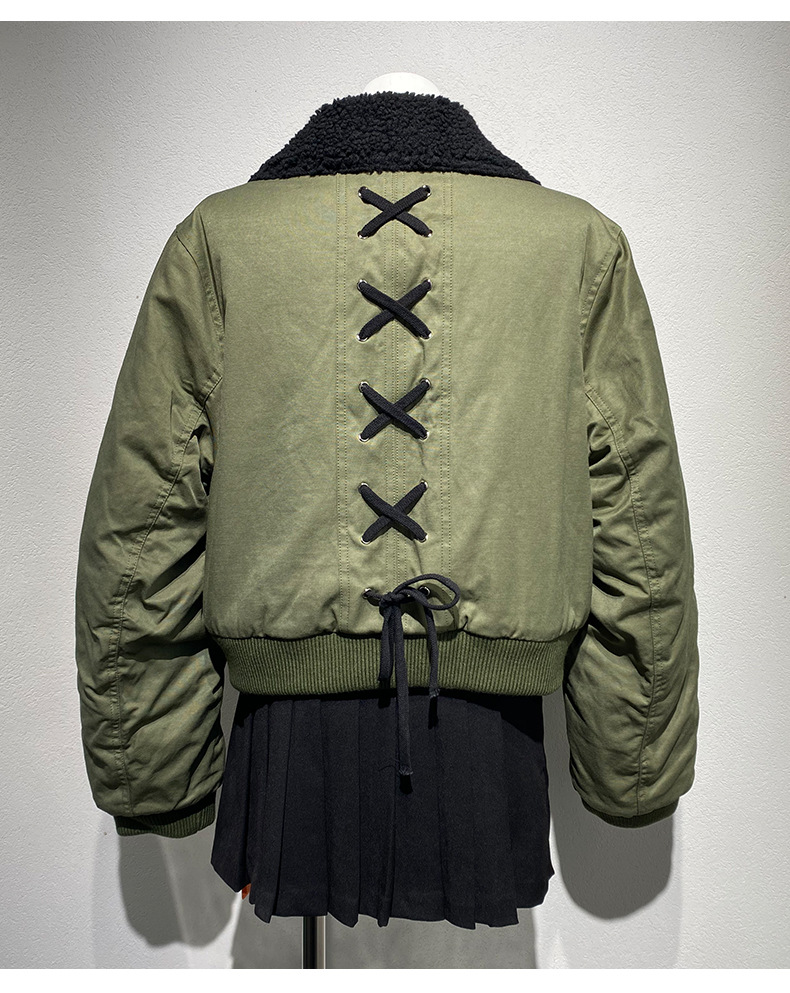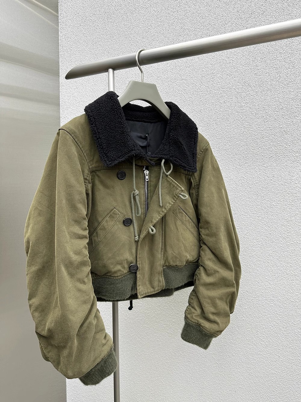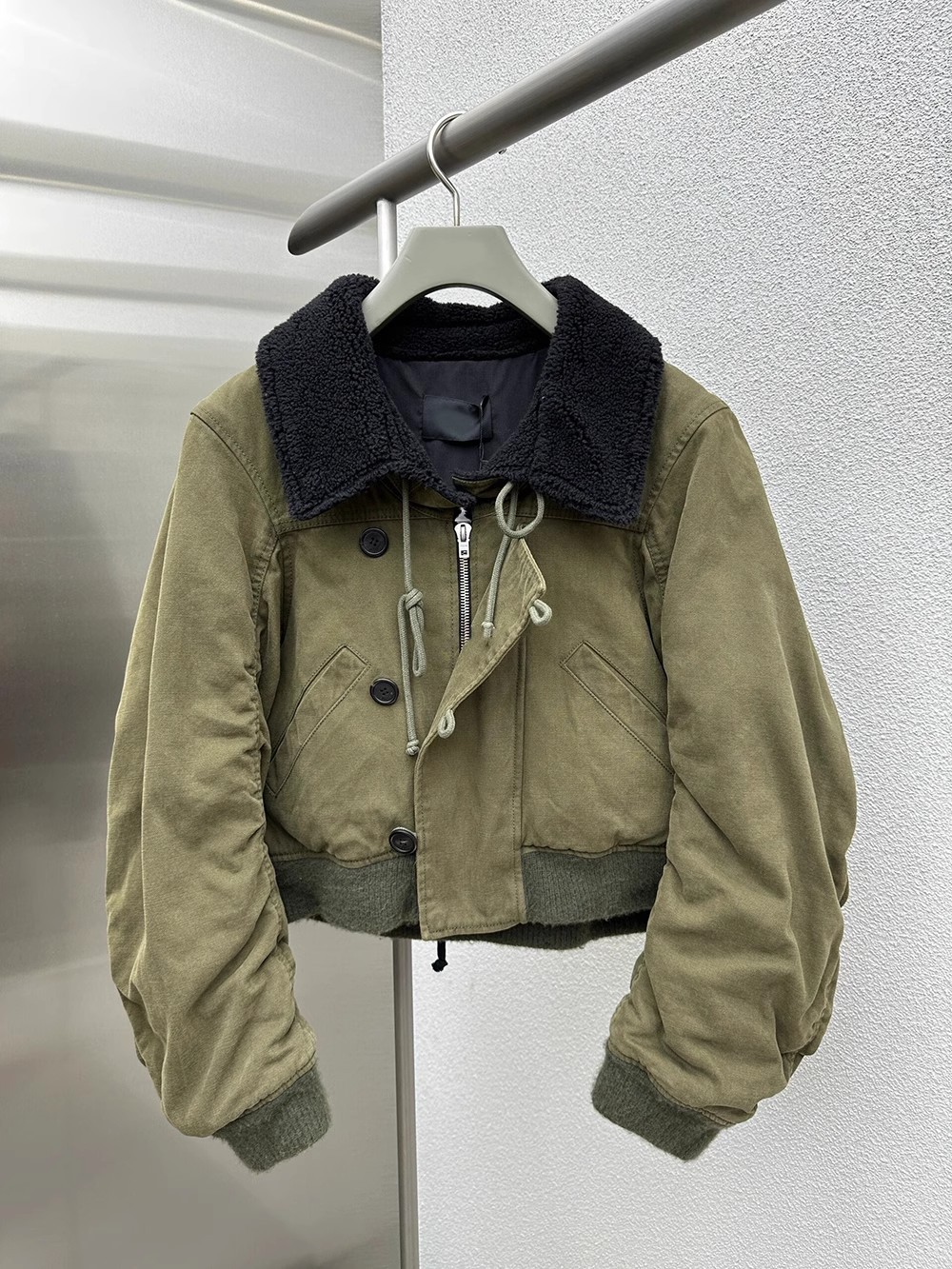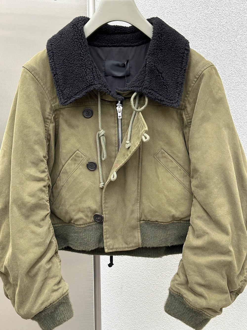 Now niche 2024 겨울 신작 대비 색상 모피 칼라 백 스트랩 라펠 캐주얼 재킷 여성용