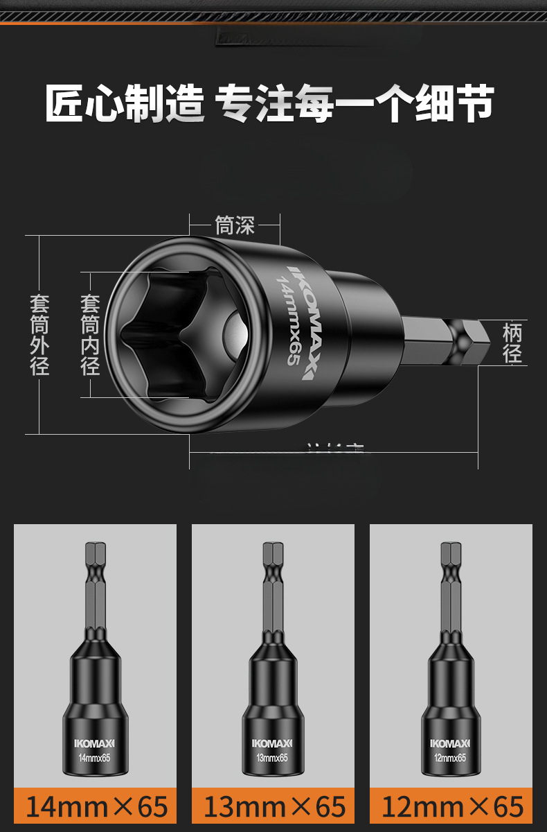 강한 자기 소켓 바람 배치 14mm 육각형 소켓 배치 헤드 핸드 드릴 확장 소켓 전기 렌치 소켓 헤드