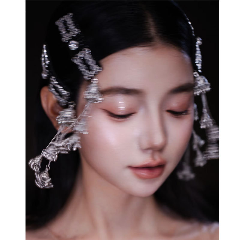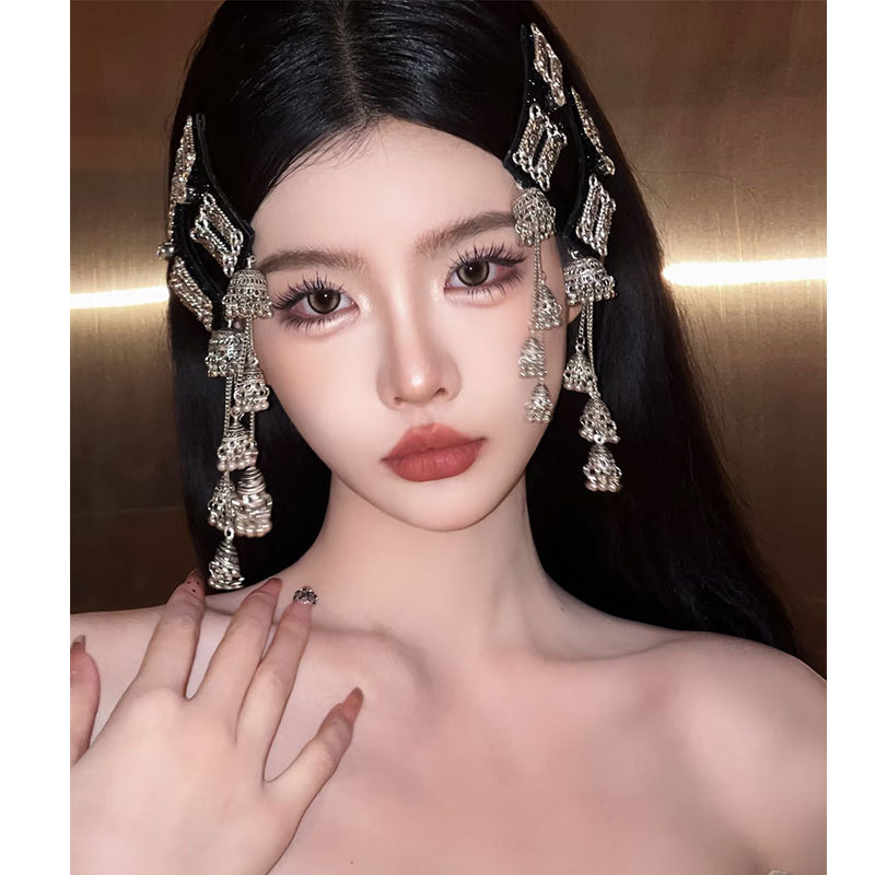 Yi Mengling 같은 스타일 실버 민족 스타일 헤어 액세서리 새로운 중국 스타일 사이드 긴 술 사이드 클립 클래식 모닝 스팸 청삼 헤어핀스토어 가기