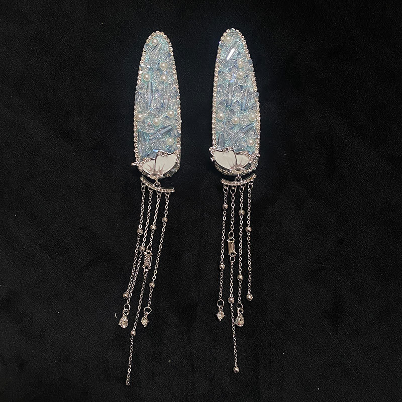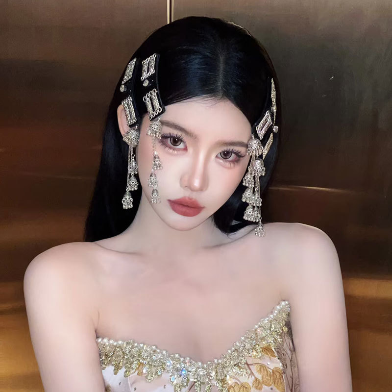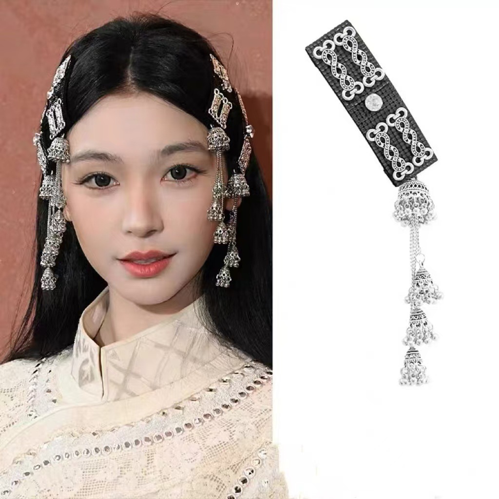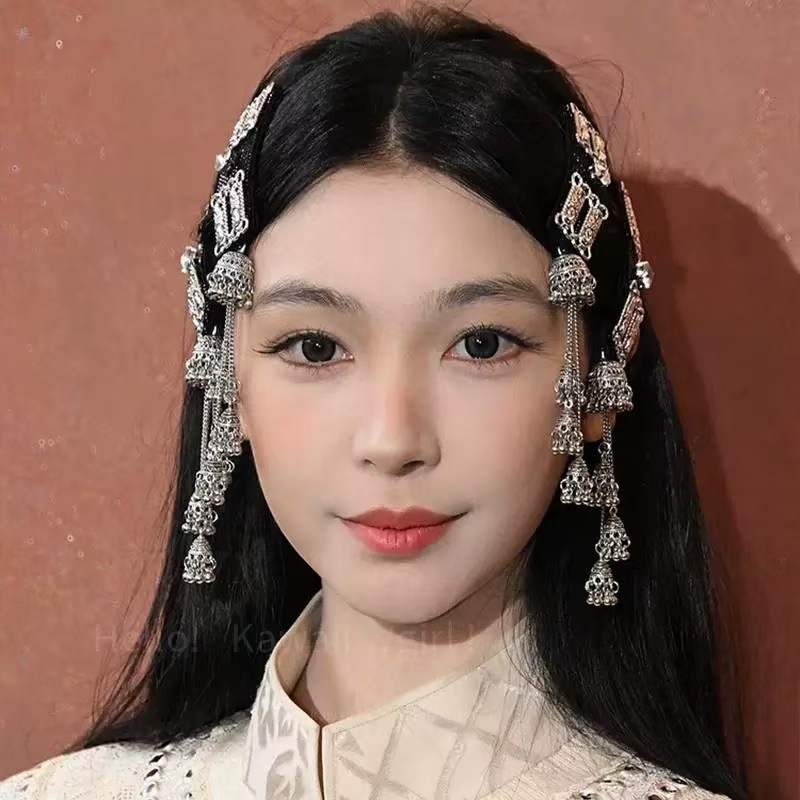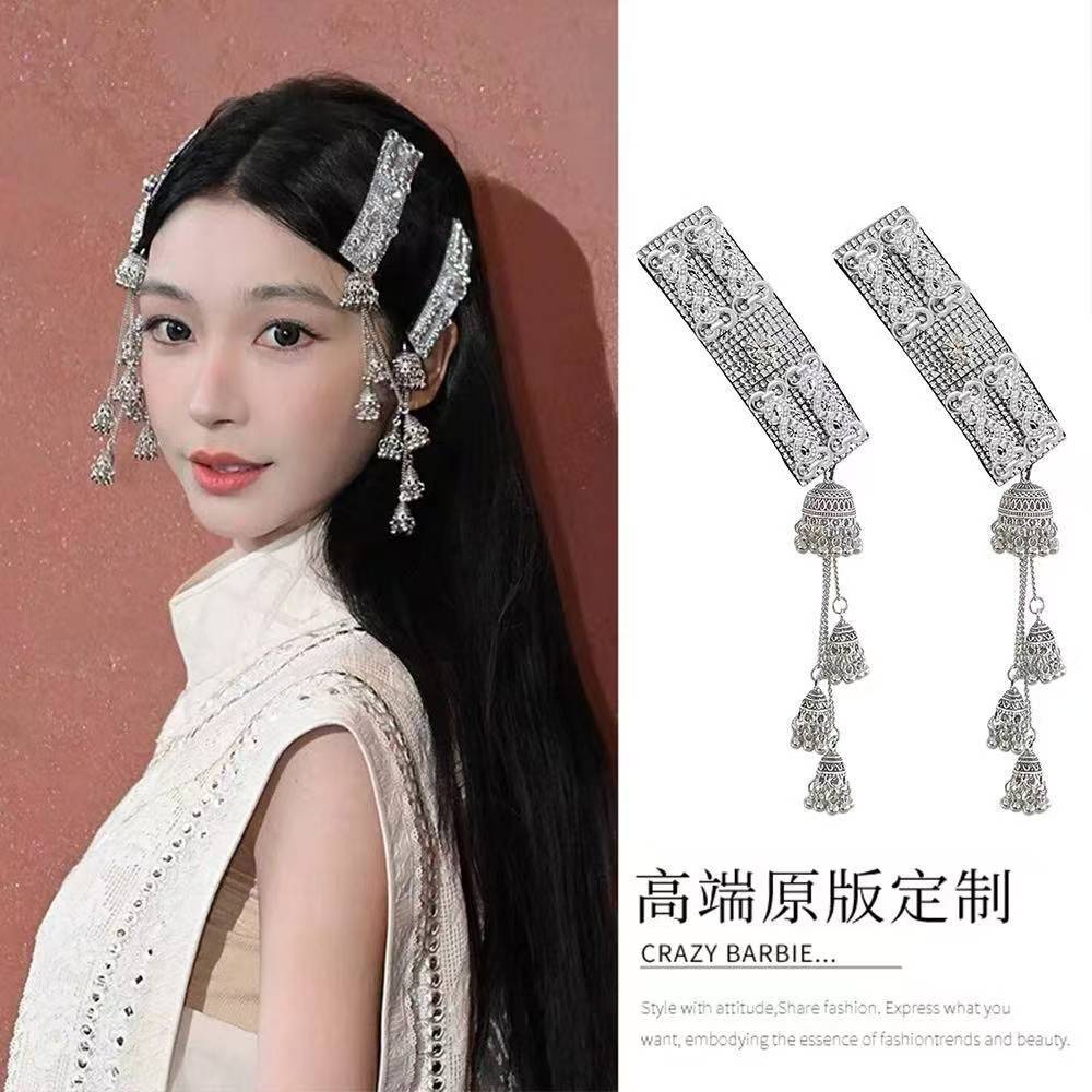 Yi Mengling 같은 스타일 실버 민족 스타일 헤어 액세서리 새로운 중국 스타일 사이드 긴 술 사이드 클립 클래식 모닝 스팸 청삼 헤어핀