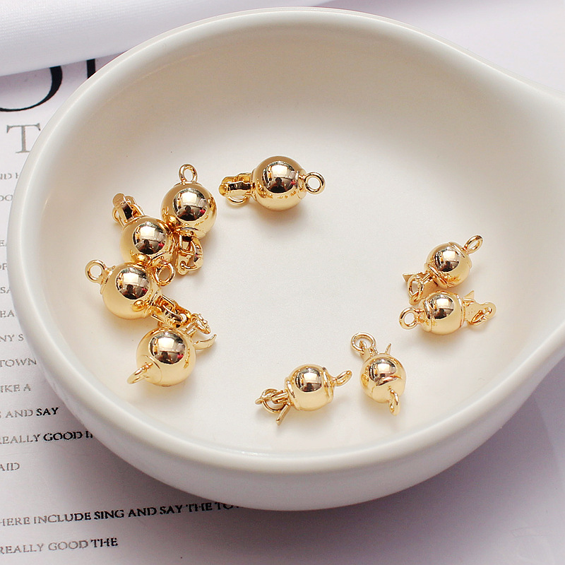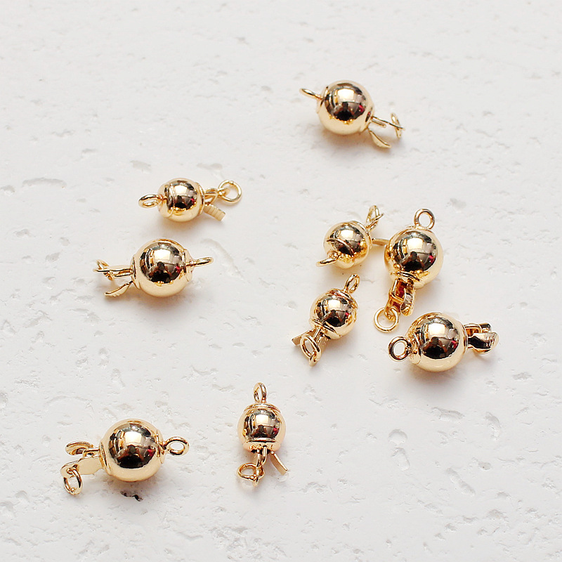 14K 골드 컬러 볼 링크 버클 진주 DIY 팔찌 목걸이 수제 쥬얼리 액세서리 링크 버클 클로저