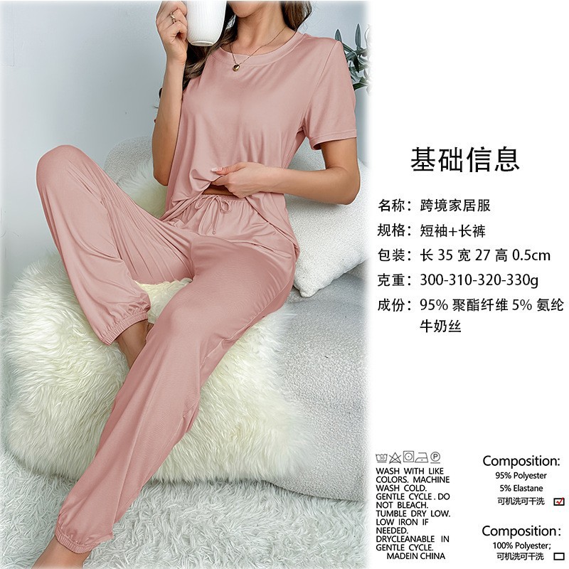 Fenliang Cross Border 2025 여름 여성 홈웨어 잠옷 여성 정장 편안하고 캐주얼하며 간단하고 착용 가능한 잠옷