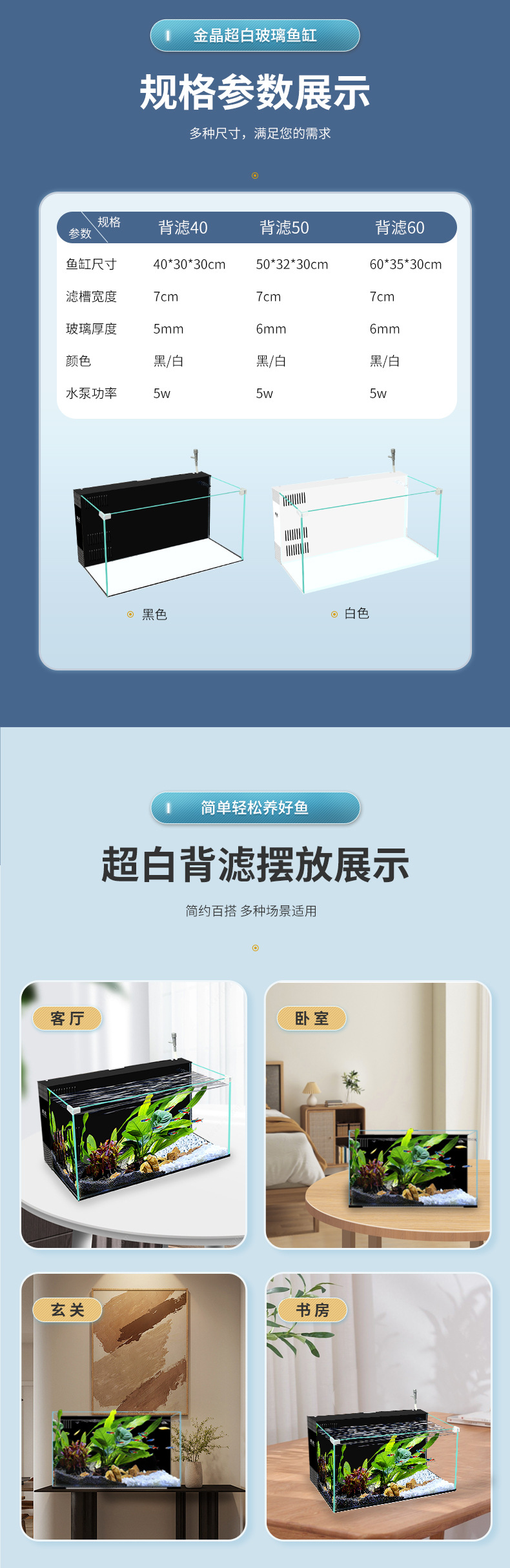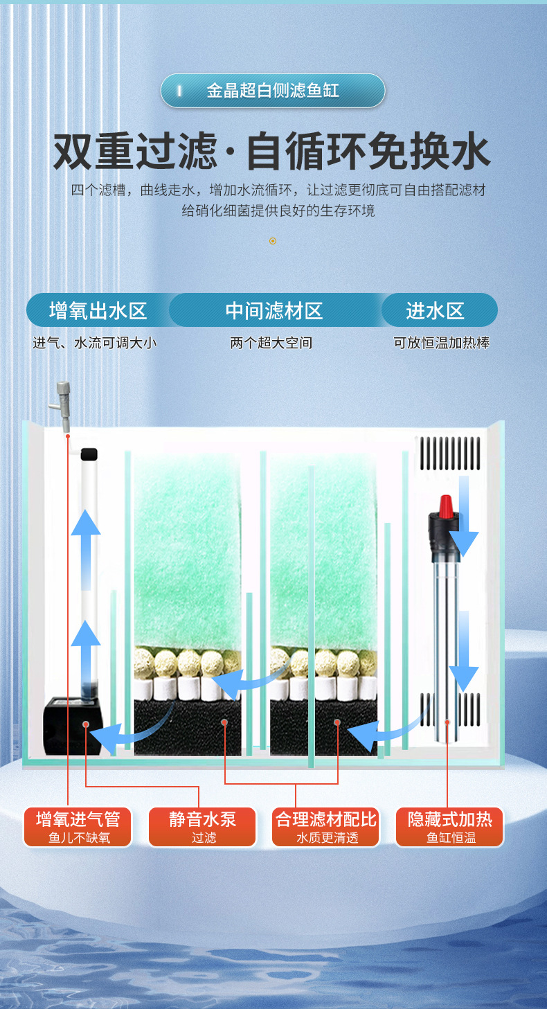 Xinxin 울트라 화이트 유리 백 필터 수조 침묵 물 변화없는 작은 수조 수족관 제조 업체 거실 가정용 수조스토어 가기