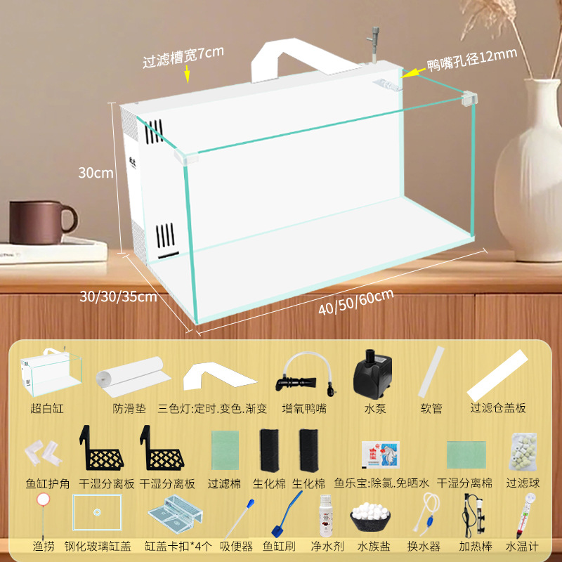 Xinxin 울트라 화이트 유리 백 필터 수조 침묵 물 변화없는 작은 수조 수족관 제조 업체 거실 가정용 수조