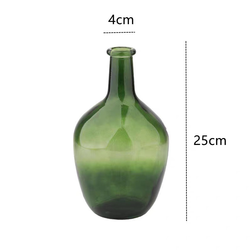 얇은 목 와인 병 모양의 유리 배꼽 꽃병 거실 꽃병 다크 그린 시계 술취한 나무 걸려있는 새로운 꽃병 장식