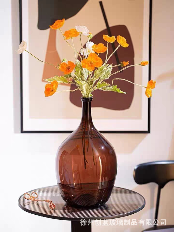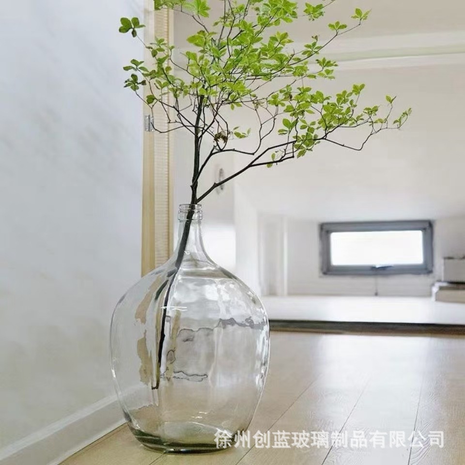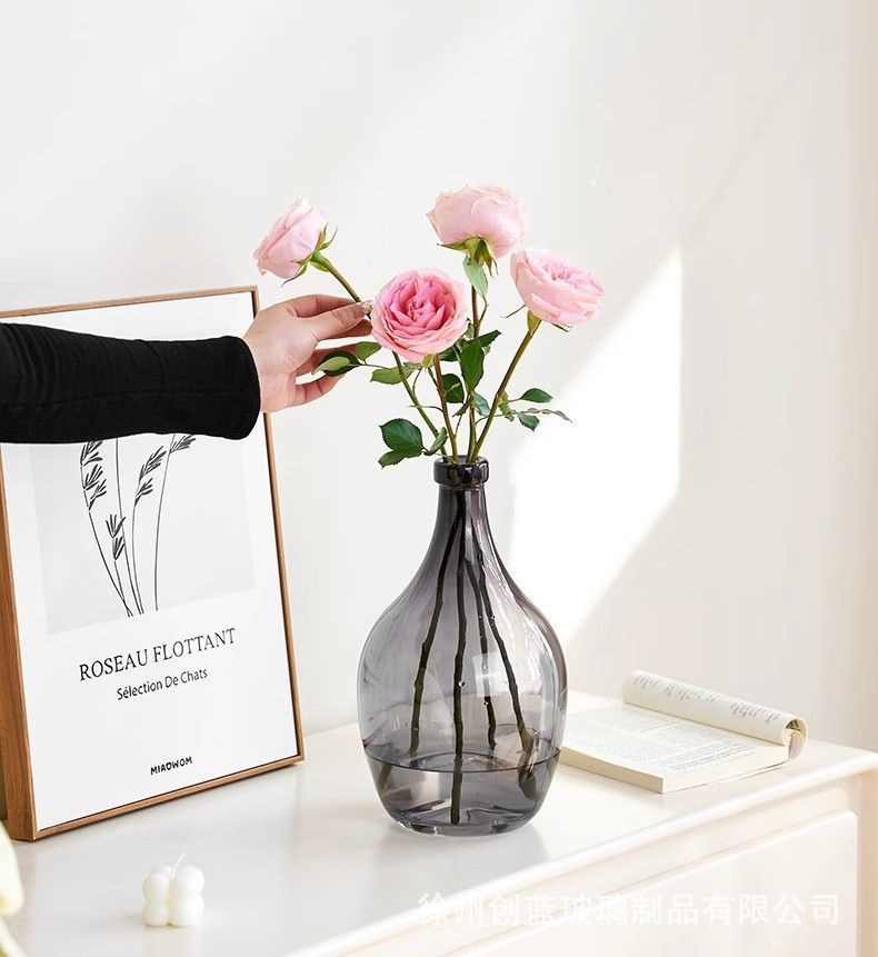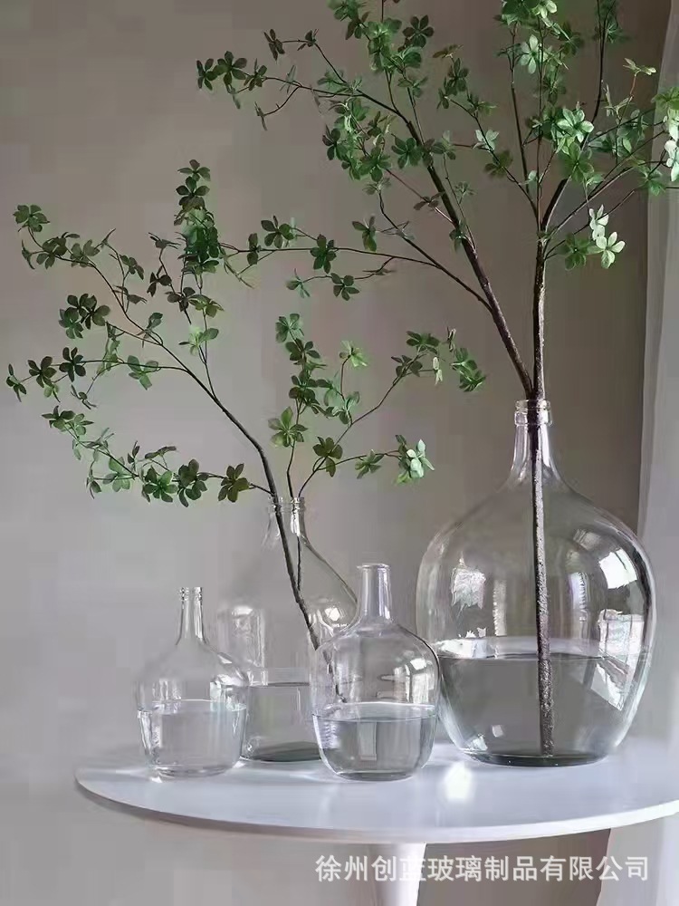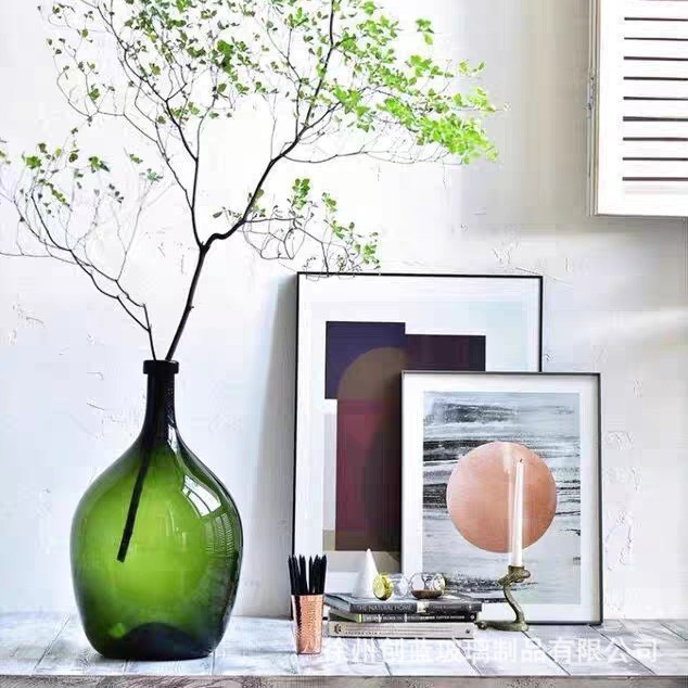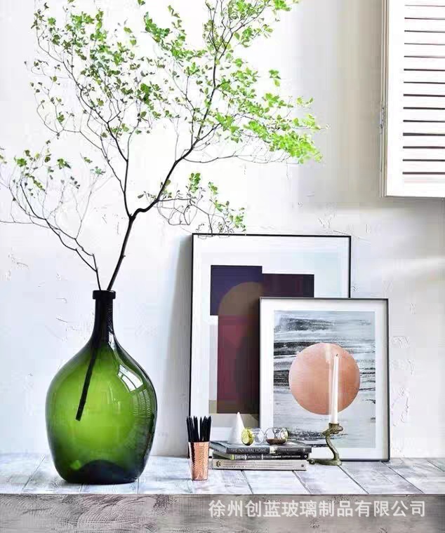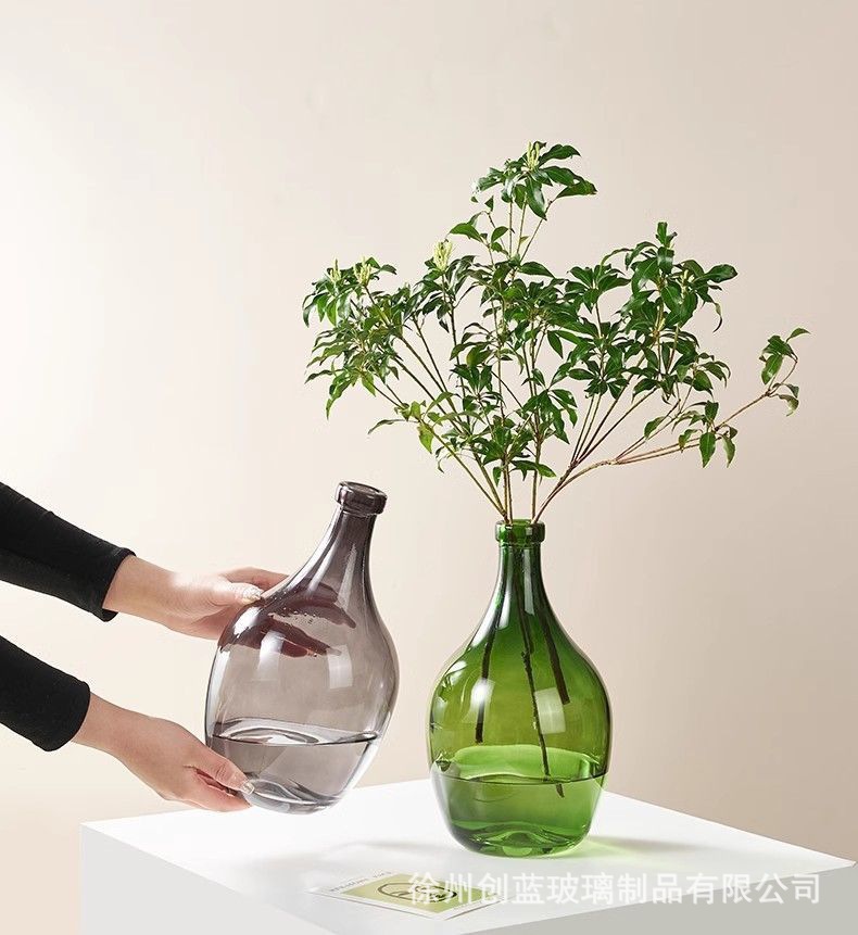 얇은 목 와인 병 모양의 유리 배꼽 꽃병 거실 꽃병 다크 그린 시계 술취한 나무 걸려있는 새로운 꽃병 장식스토어 가기