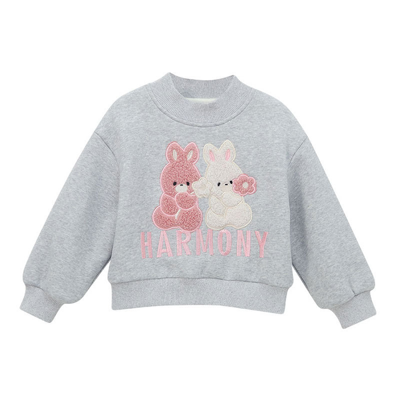 여자 기모 스웨터 겨울 2024 새로운 스타일 어린이 만화 토끼 스웨터 소녀 올매치 베이스 셔츠스토어 가기