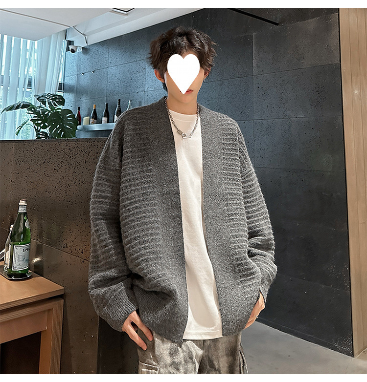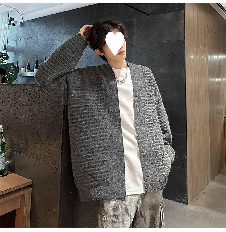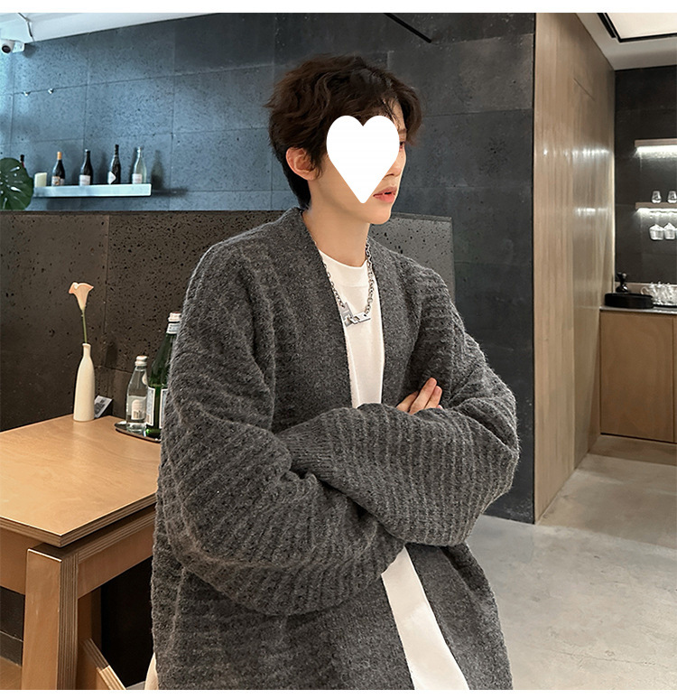 가을과 겨울 V 넥 카디건 스웨터 남자 헤비 게으른 스타일 레트로 니트웨어 하이 엔드 루즈 스웨터 커플 코트스토어 가기