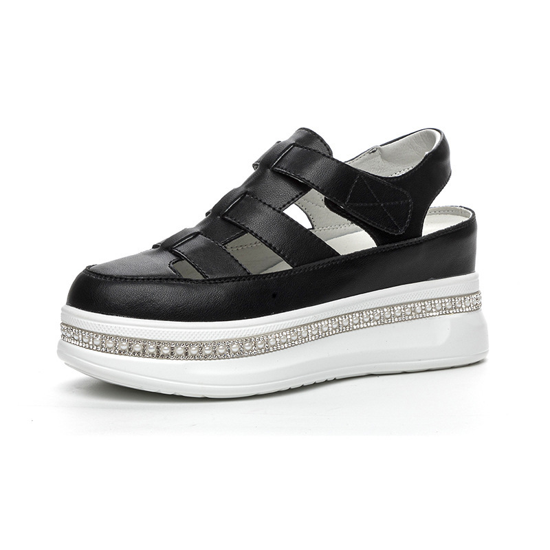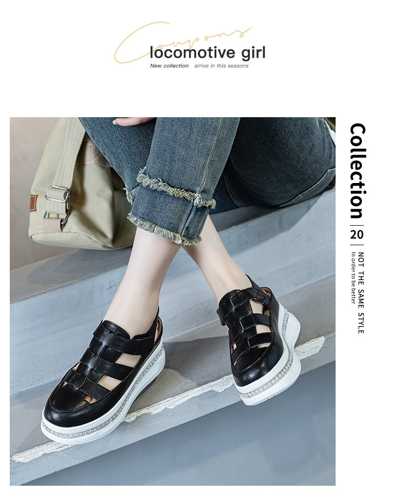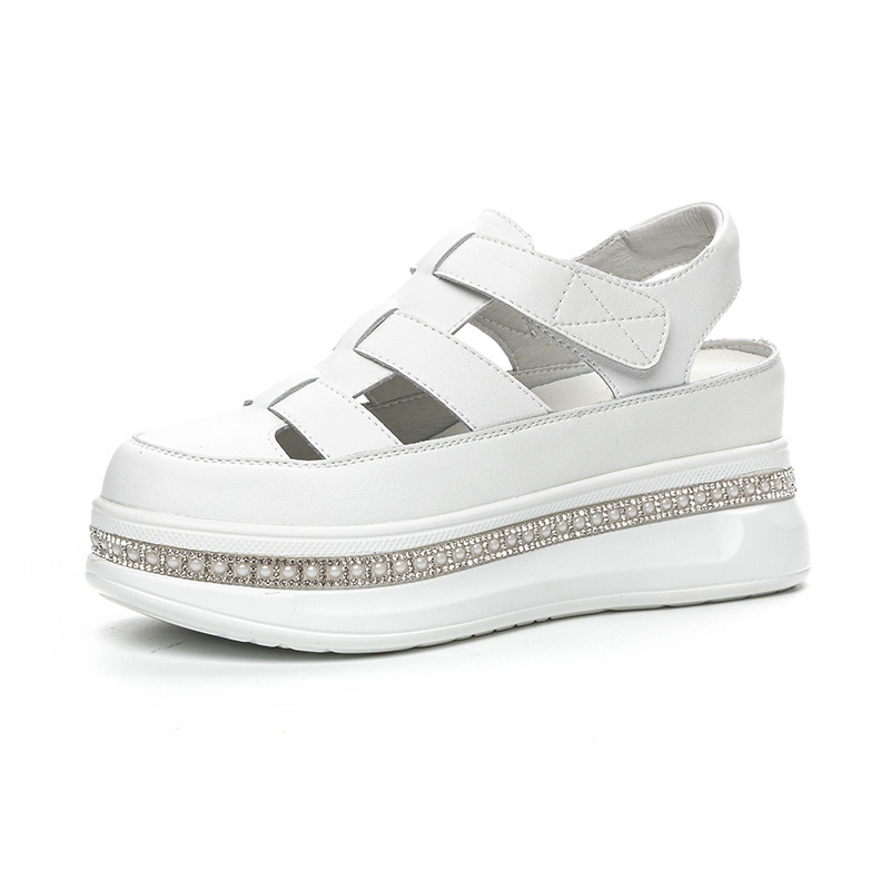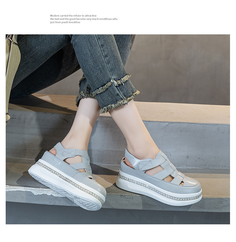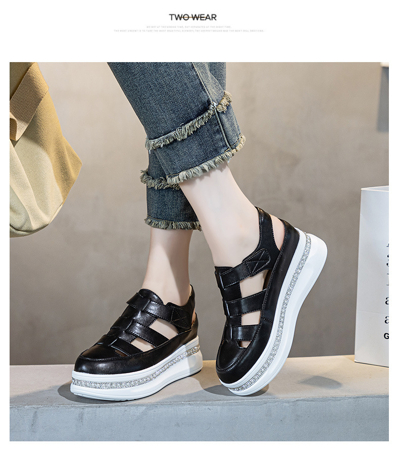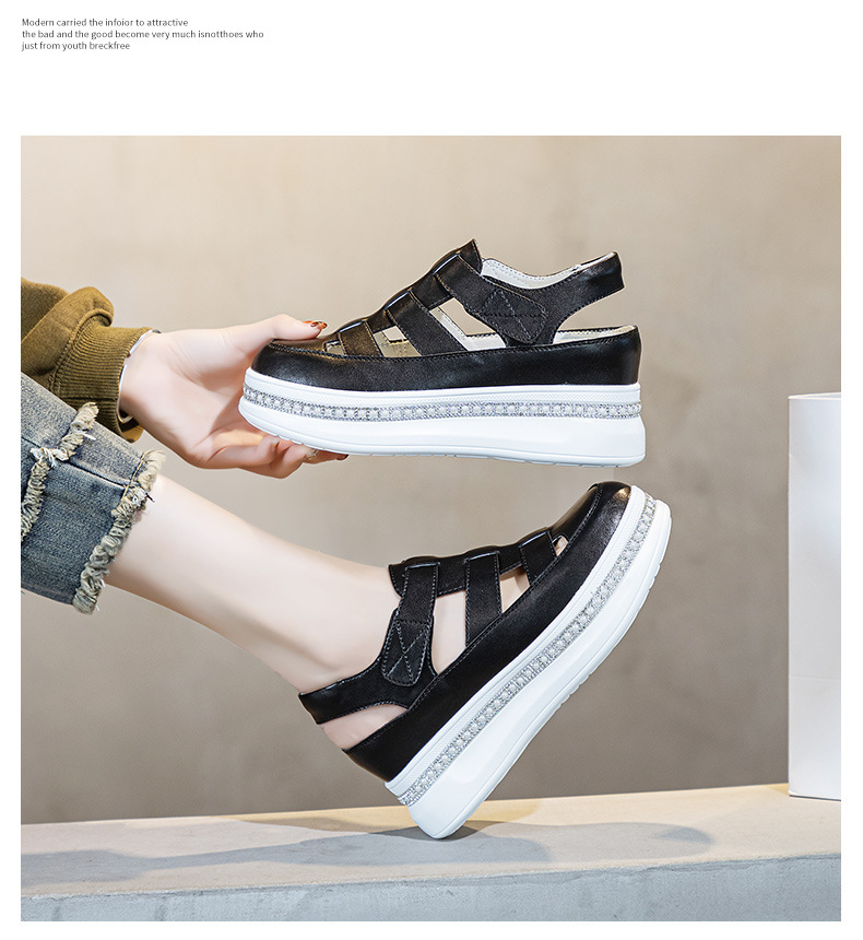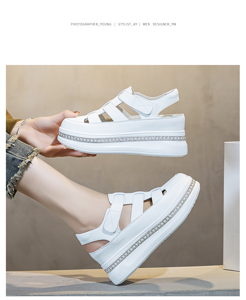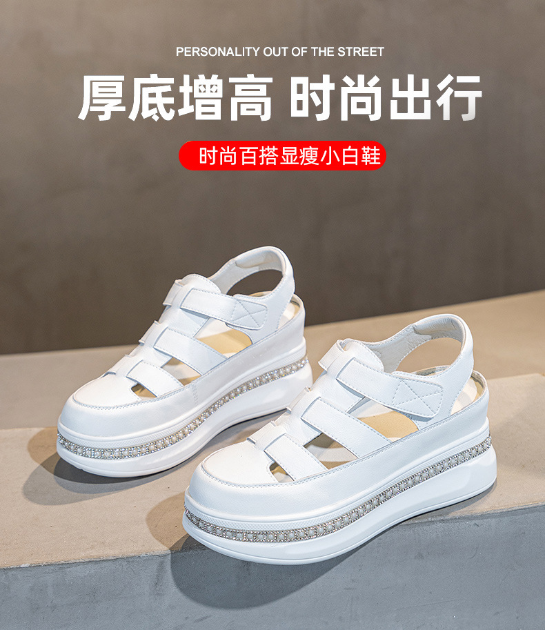 바오터우 로마 웨지 샌들 여성 여름 2025 신상 두꺼운 밑창 흰색 신발 통기성 키높이 여성화 작은 키 여성을 위한스토어 가기