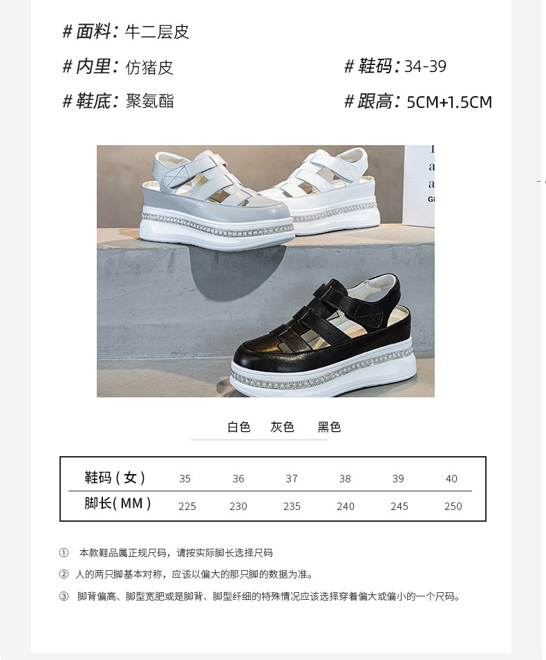바오터우 로마 웨지 샌들 여성 여름 2025 신상 두꺼운 밑창 흰색 신발 통기성 키높이 여성화 작은 키 여성을 위한