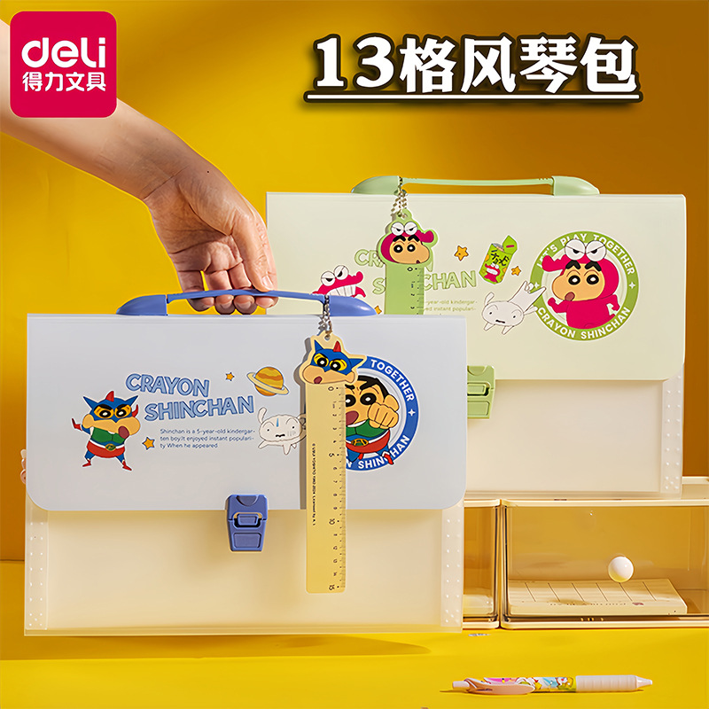 델리 크레용 샤오 신 오르간 가방 a4 휴대용 학생 시험 종이 보관 가방 튜토리얼 가방 13 다층 폴더