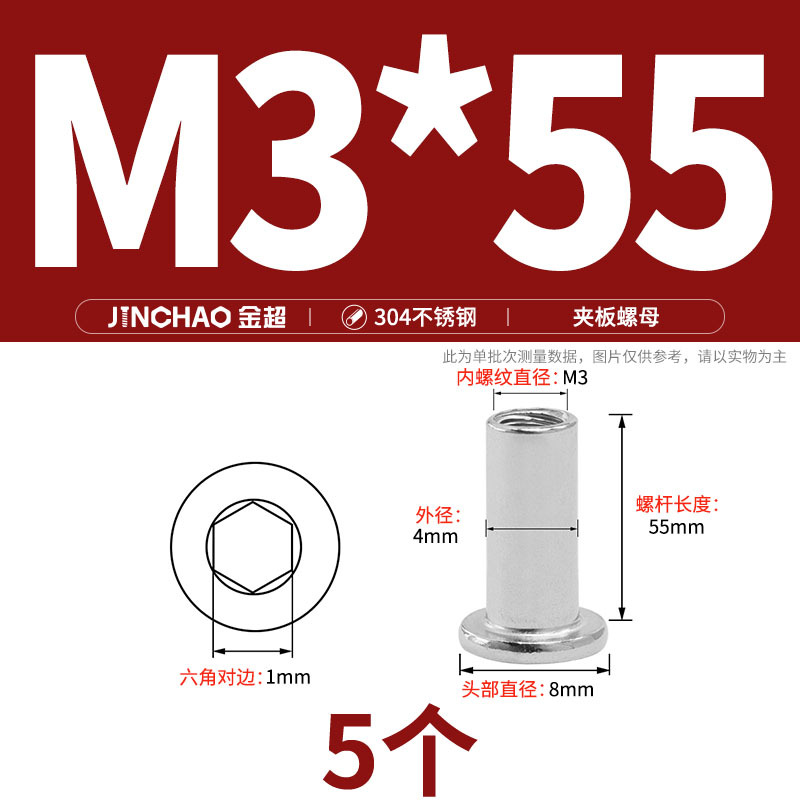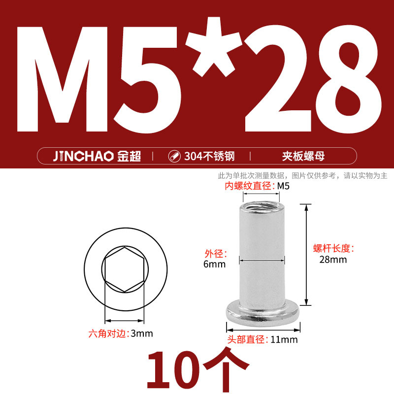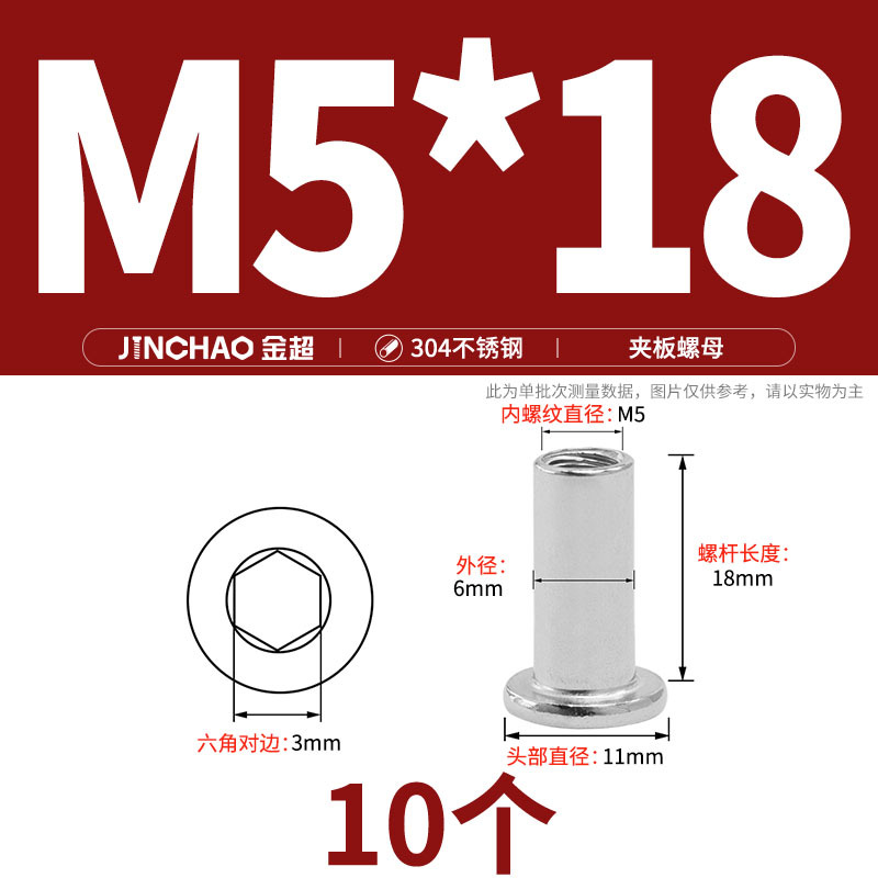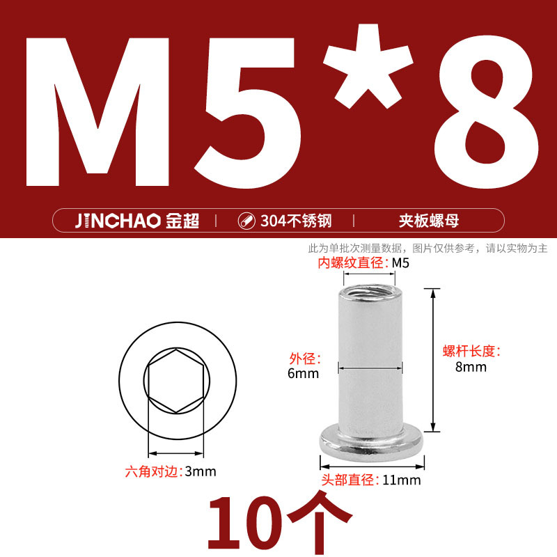 304 스테인레스 스틸 플랫 헤드 거꾸로 된 가장자리 가구 육각형 소켓 너트 엉덩이 스플린트 너트 너트 M3M4M5M6M8M10