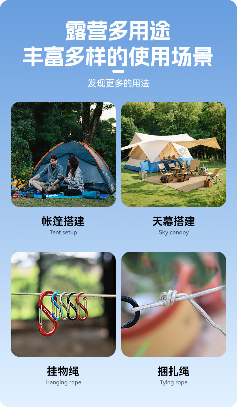재고 Dalima 2mm 반사 바람 로프 텐트 야외 캠핑 고강도 하늘 커튼 로프 캠핑 방풍 조명 로프스토어 가기