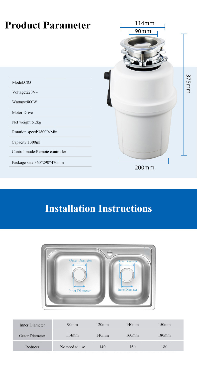국경 간 독점 주방 폐기물 처리기 세대 가정용 자동 싱크 주방 식품 분쇄기