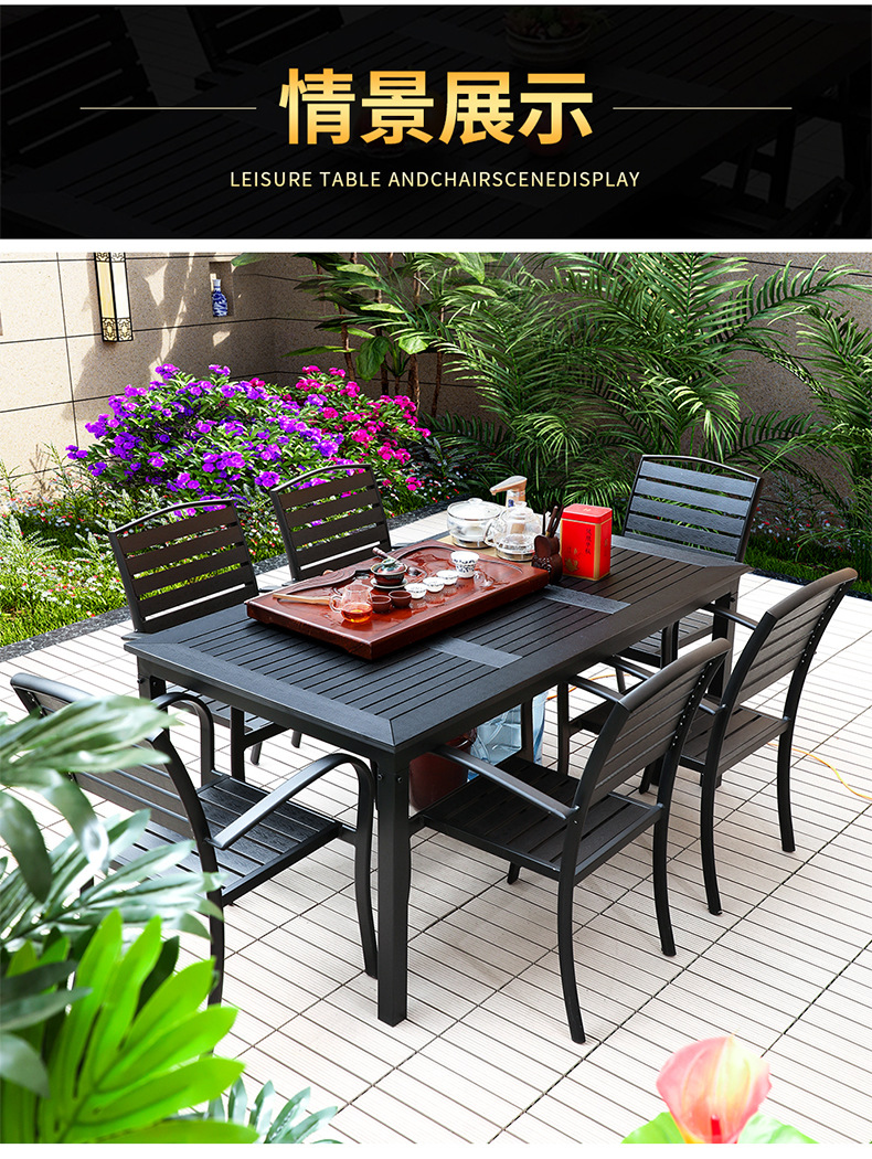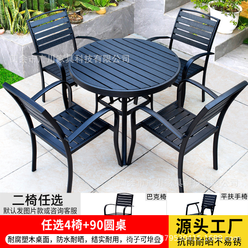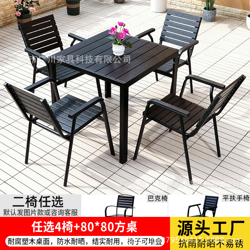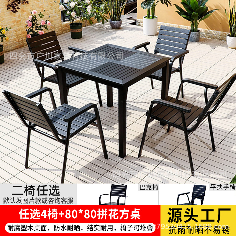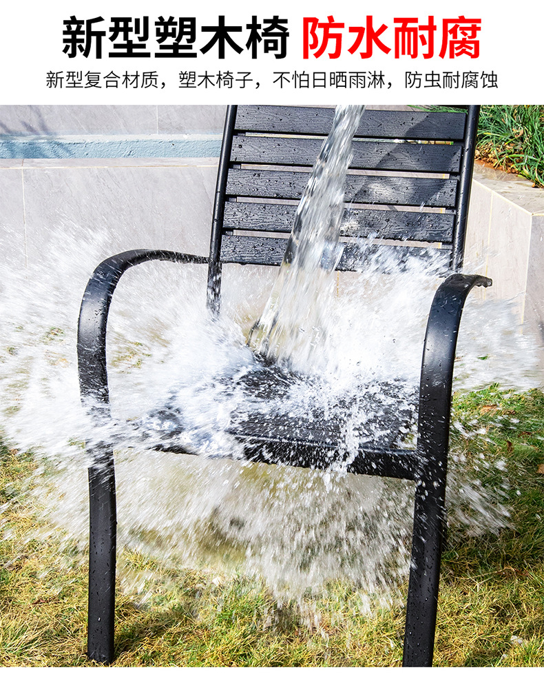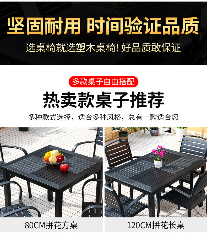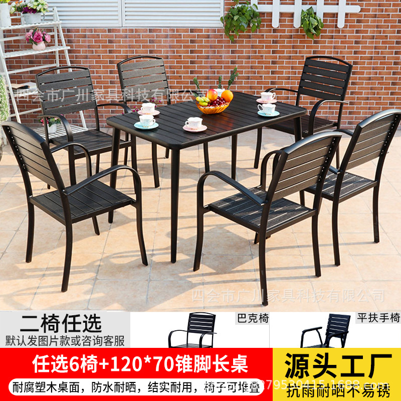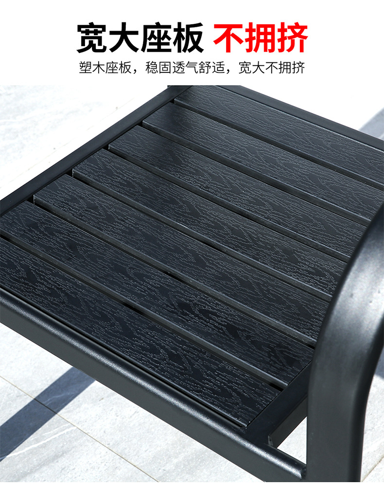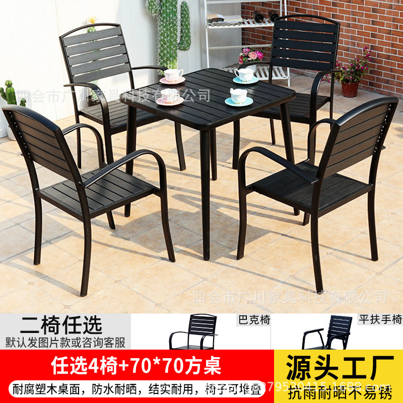 户外庭院塑木桌椅现代简约防腐木室外家商用餐茶金属休闲桌椅组合