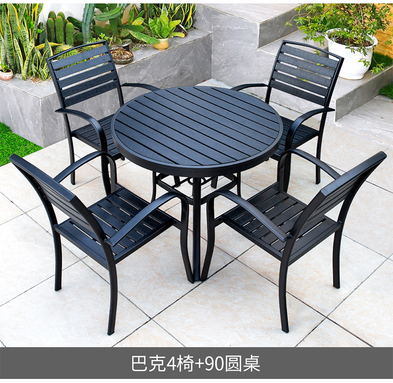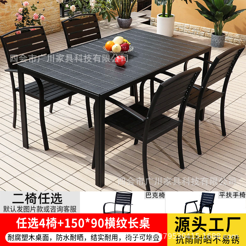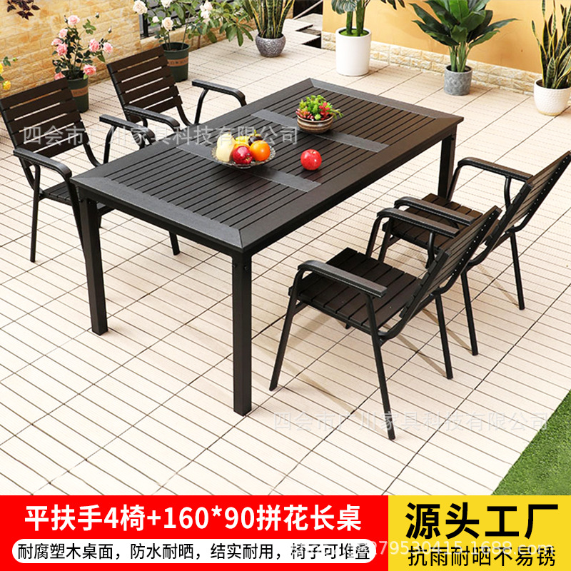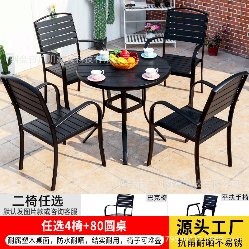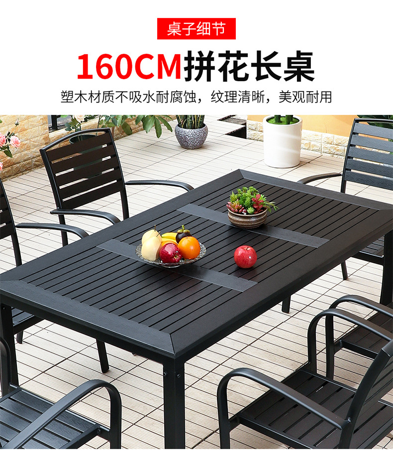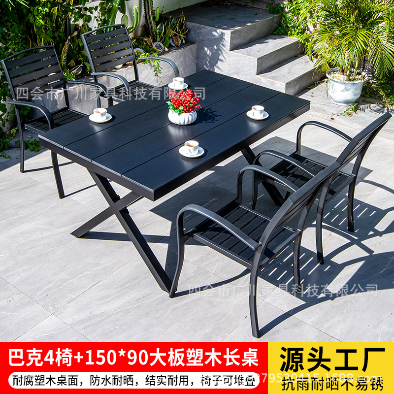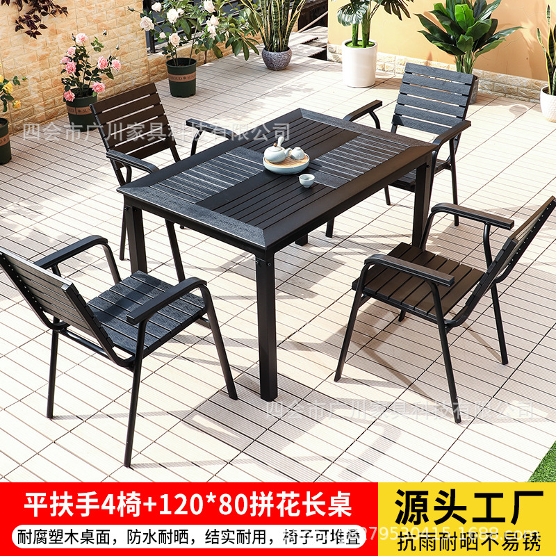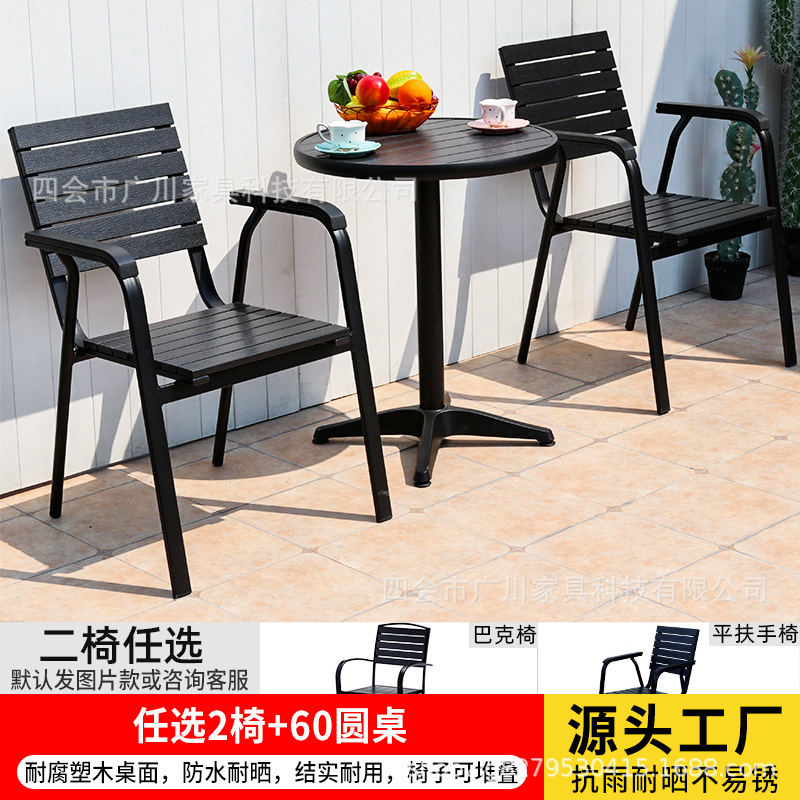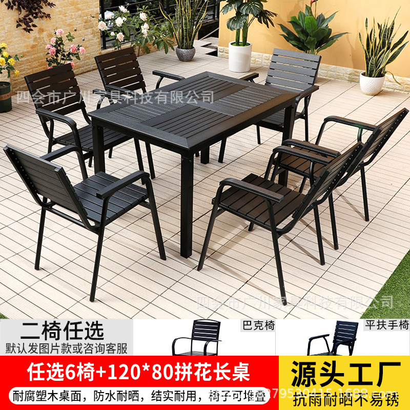 户外庭院塑木桌椅现代简约防腐木室外家商用餐茶金属休闲桌椅组合