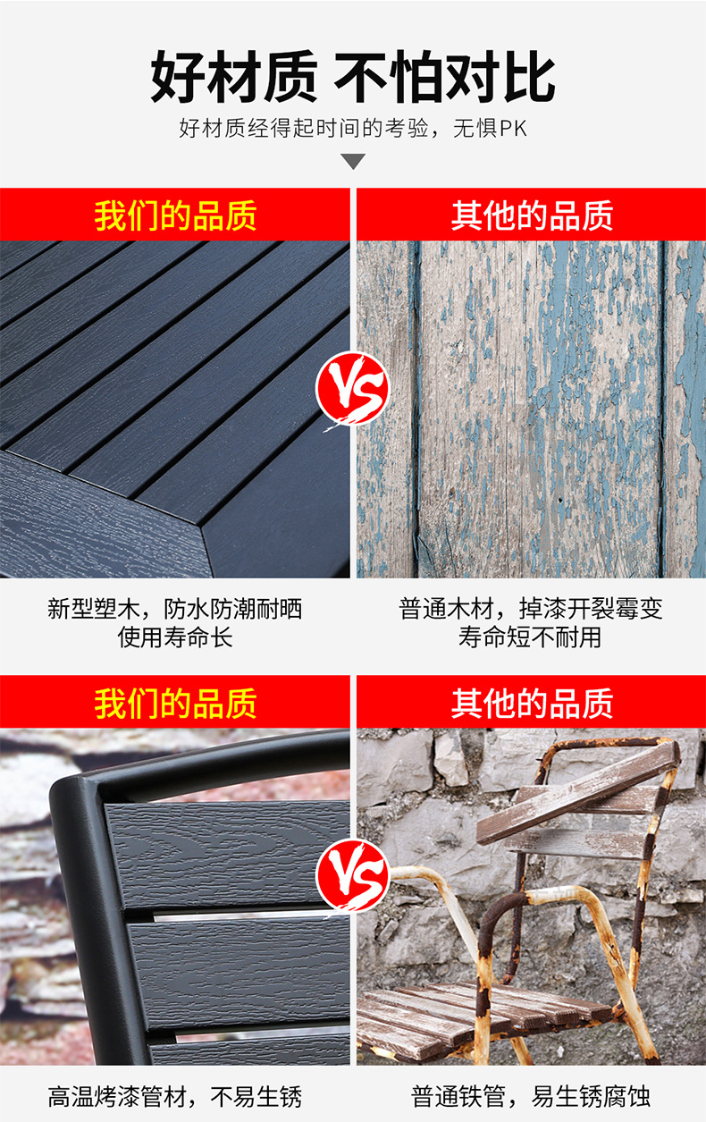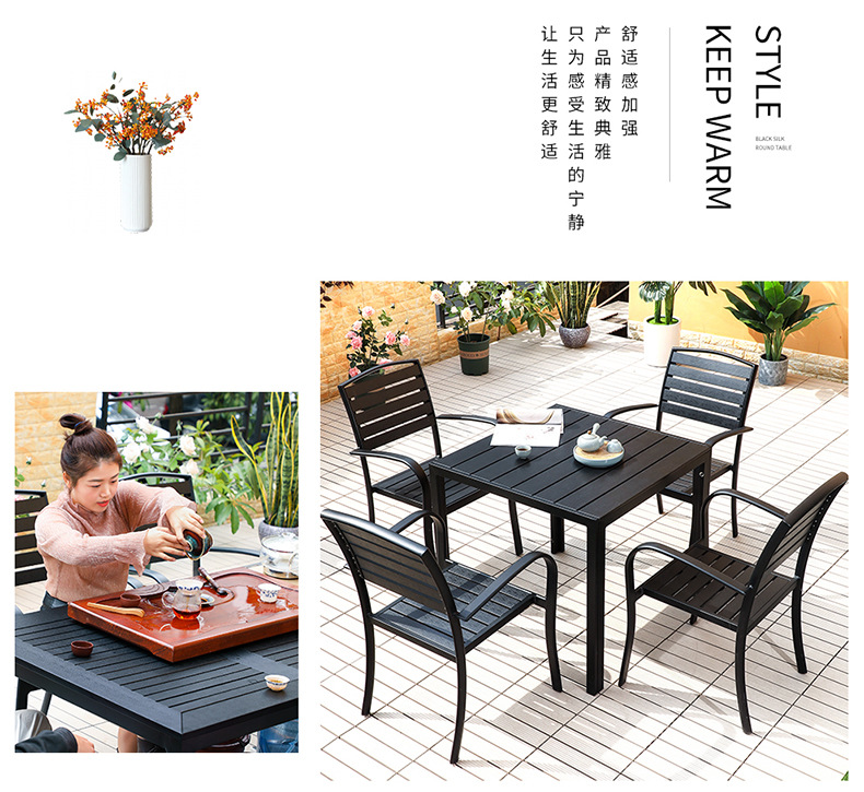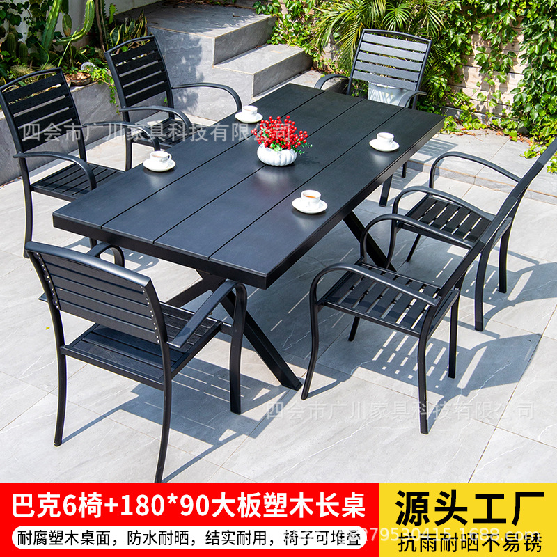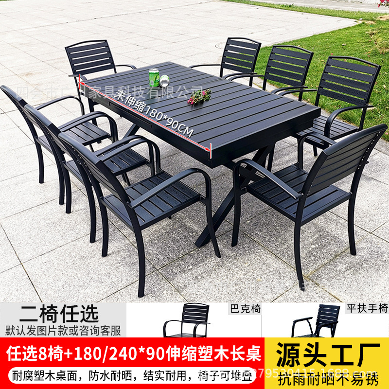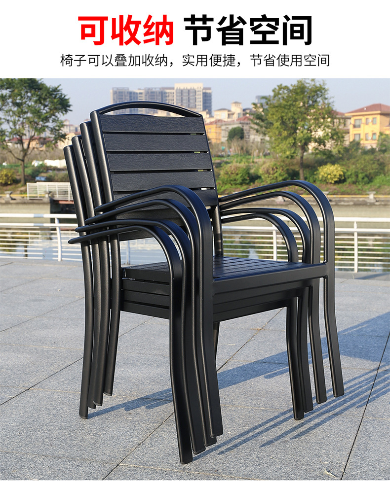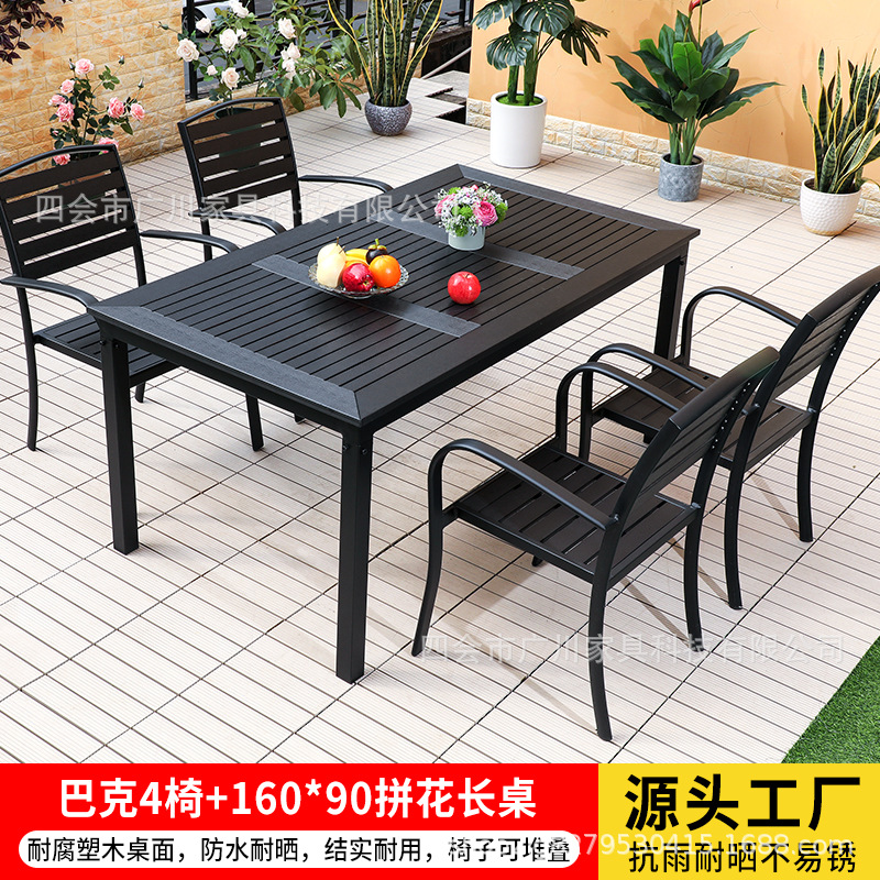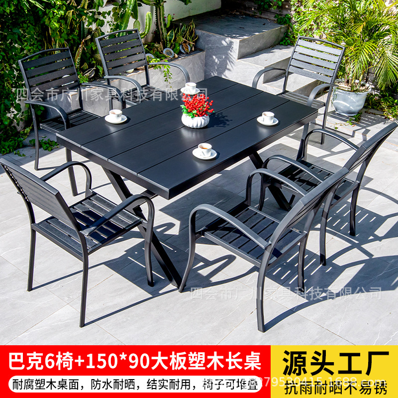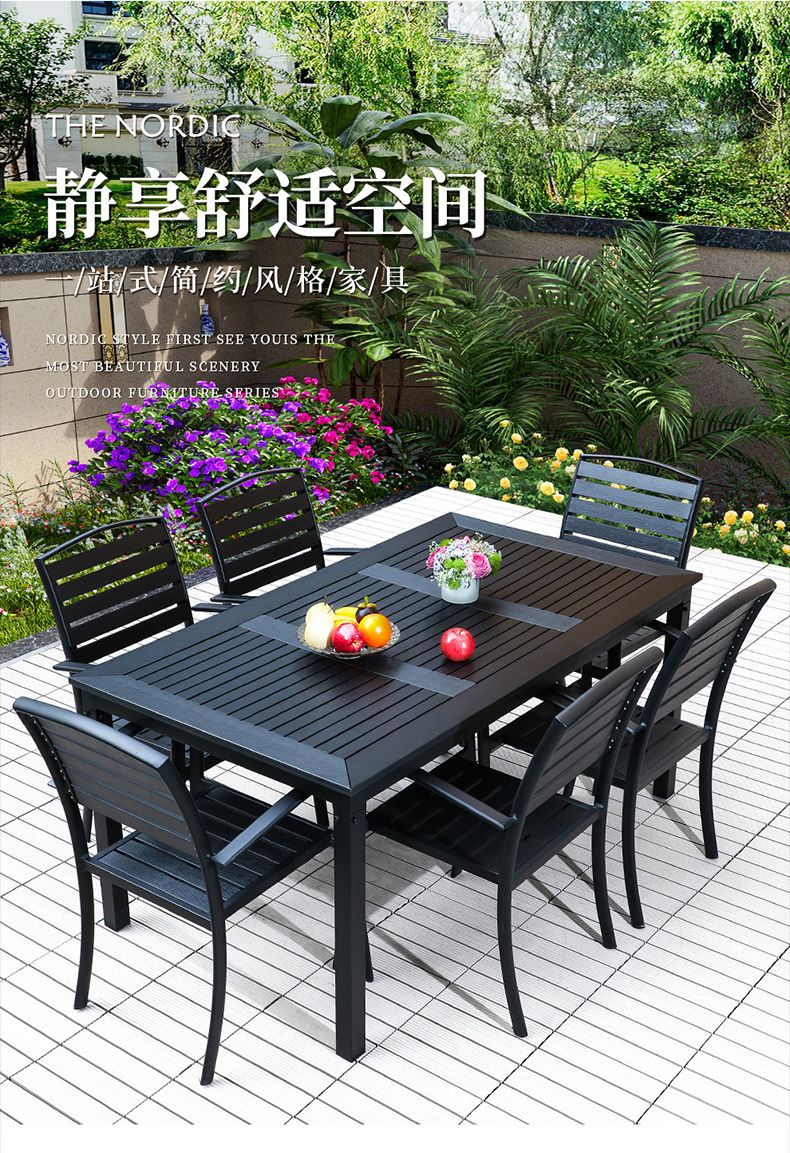 户外庭院塑木桌椅现代简约防腐木室外家商用餐茶金属休闲桌椅组合