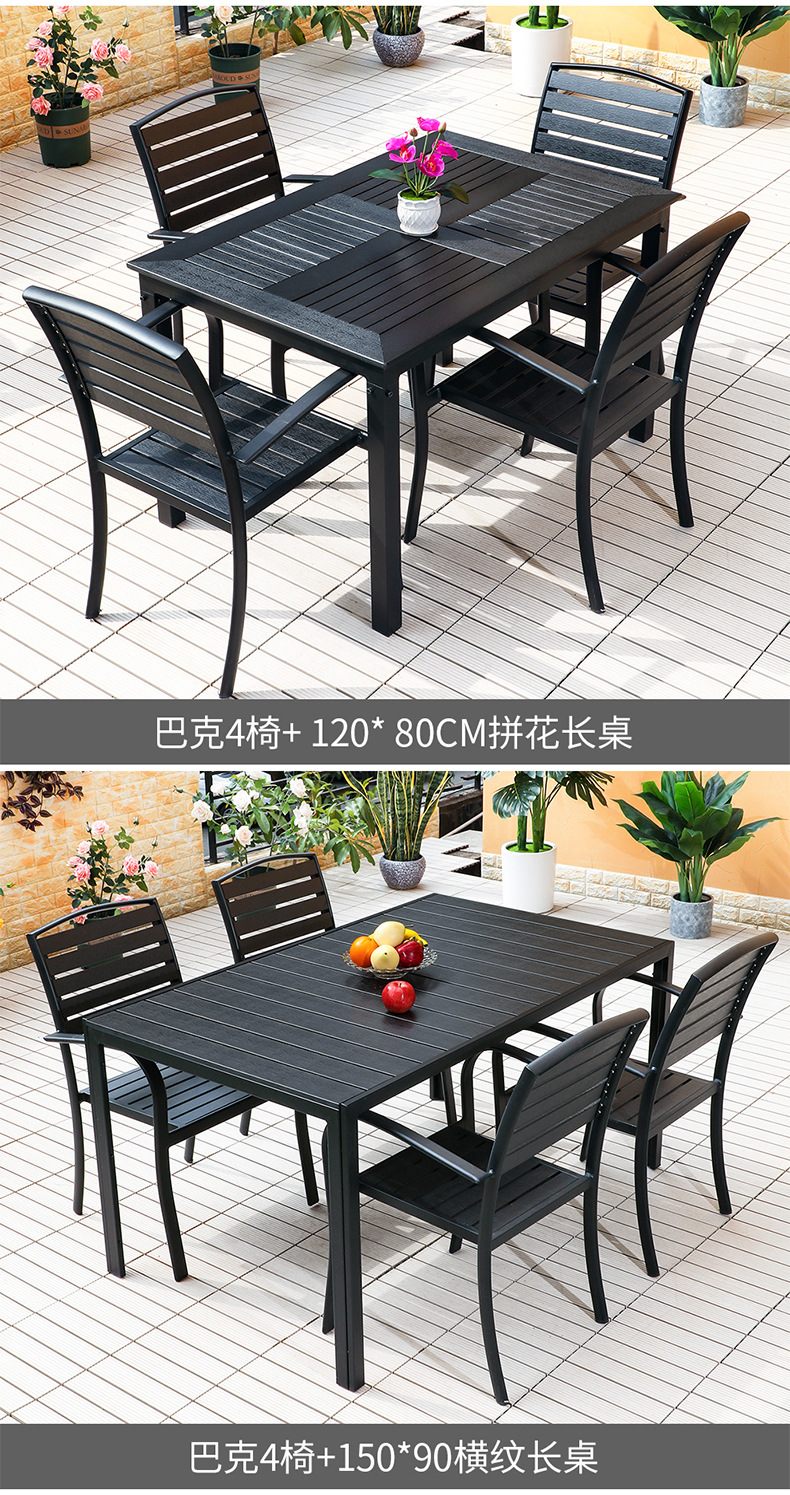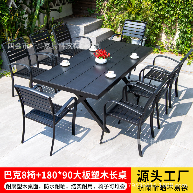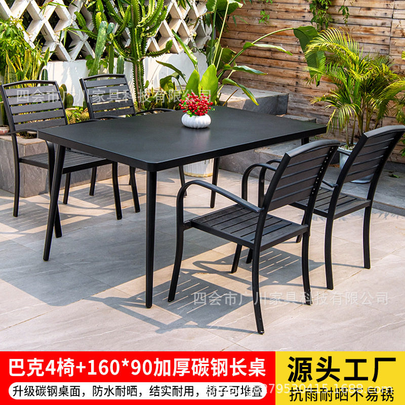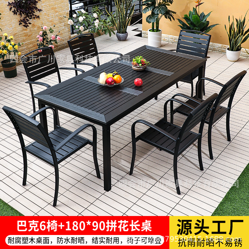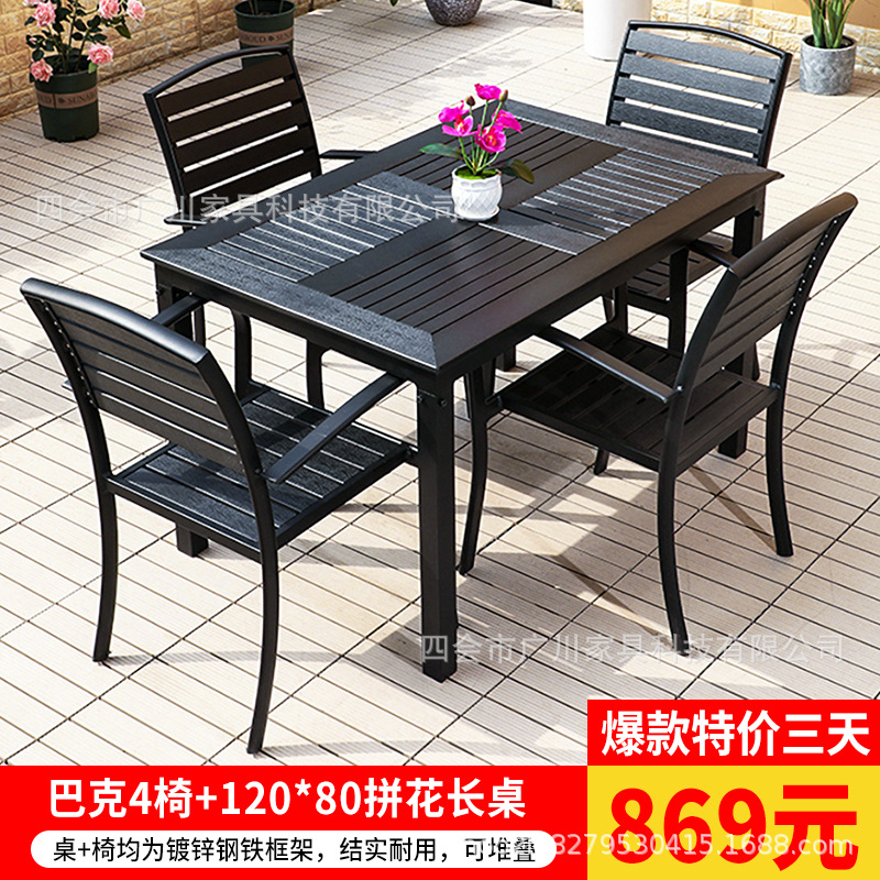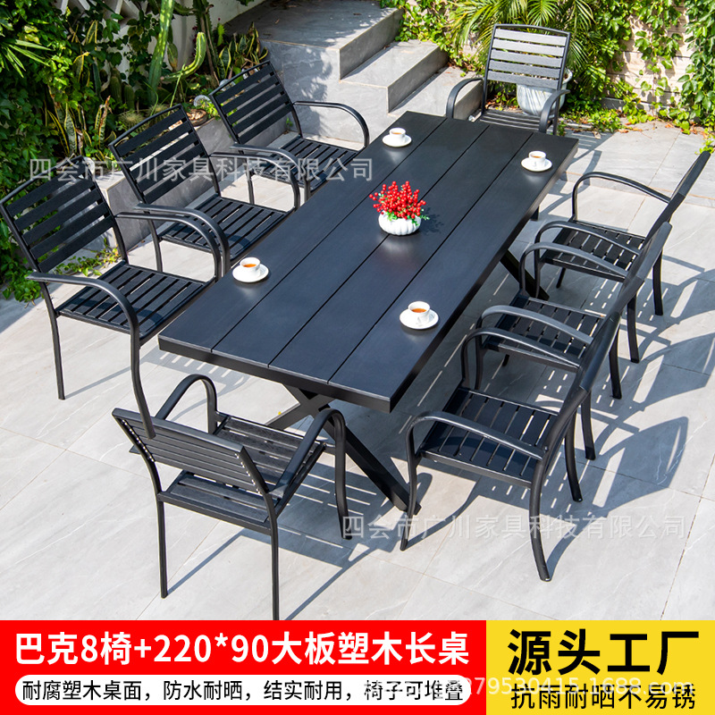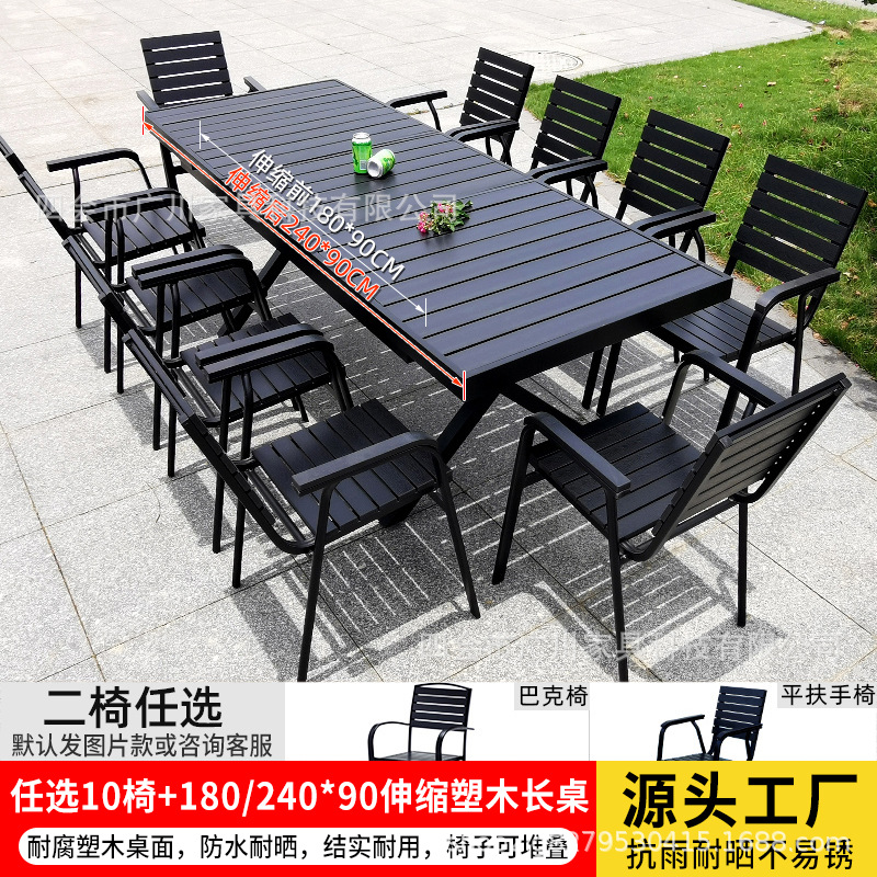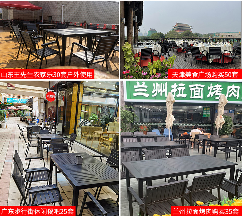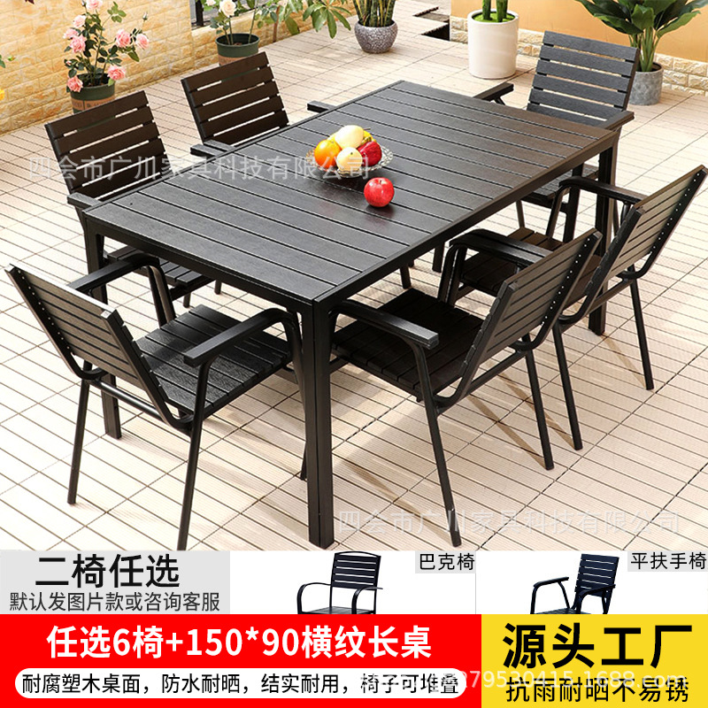 户外庭院塑木桌椅现代简约防腐木室外家商用餐茶金属休闲桌椅组合
