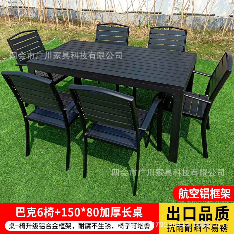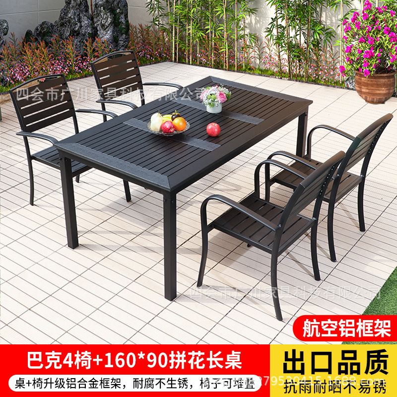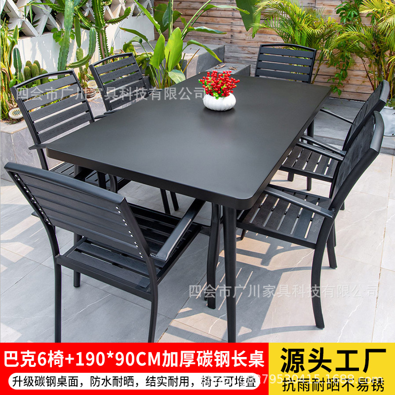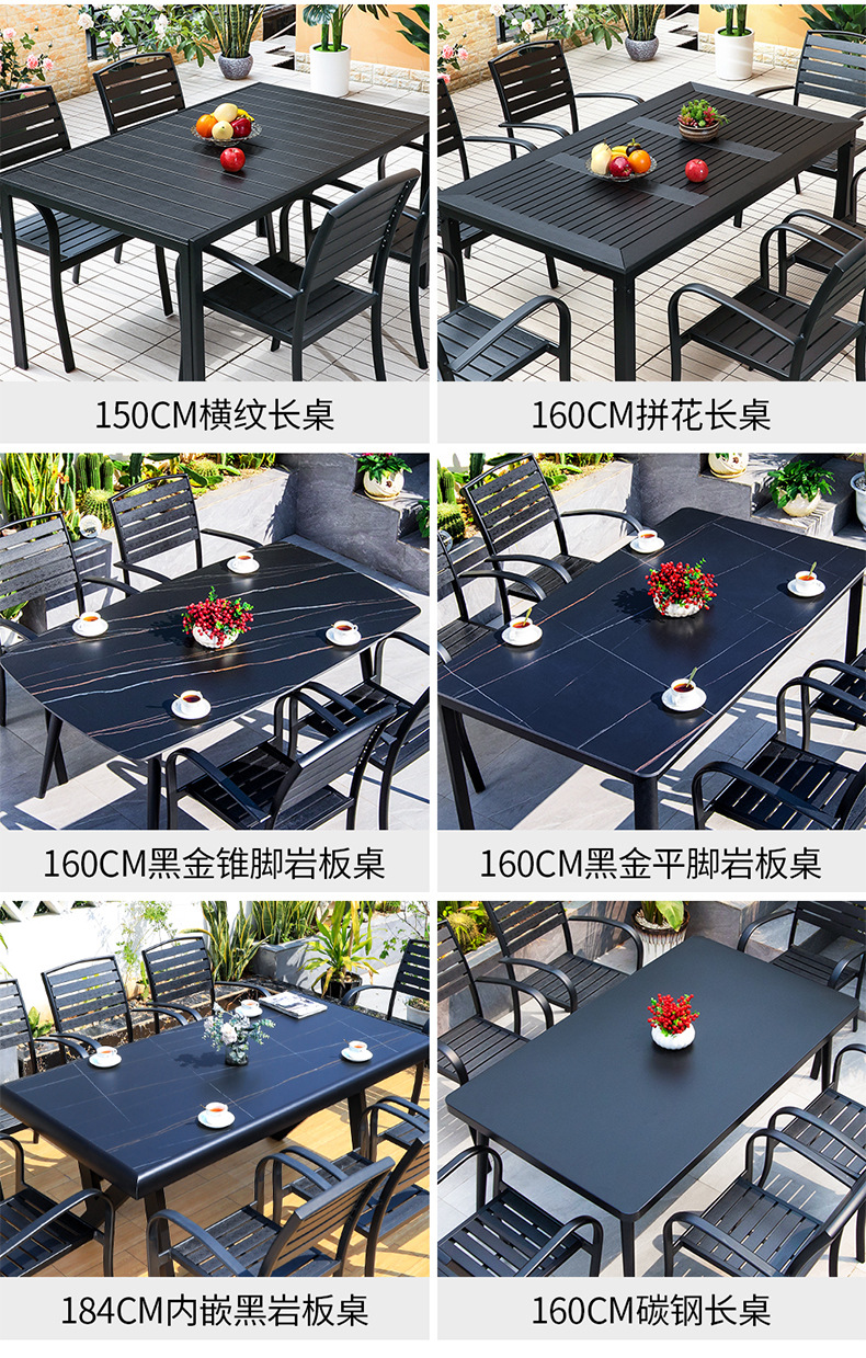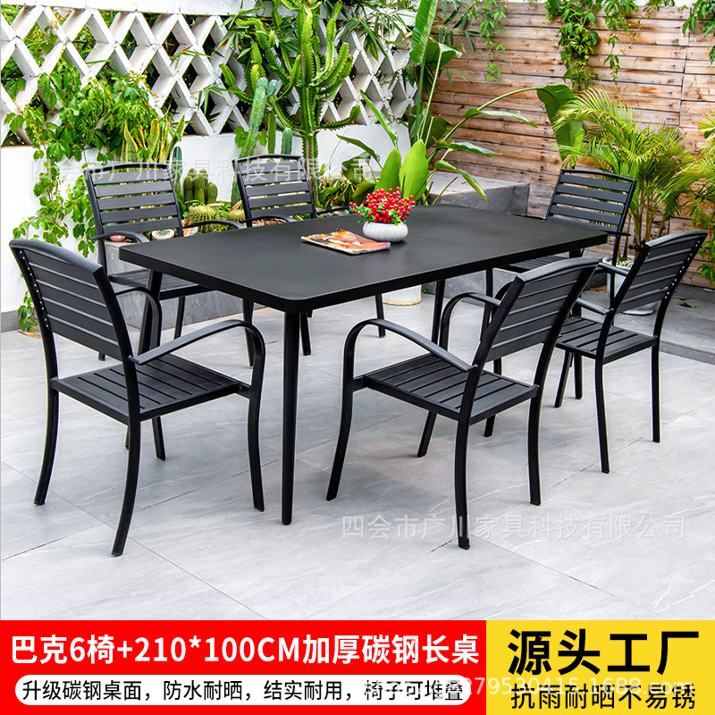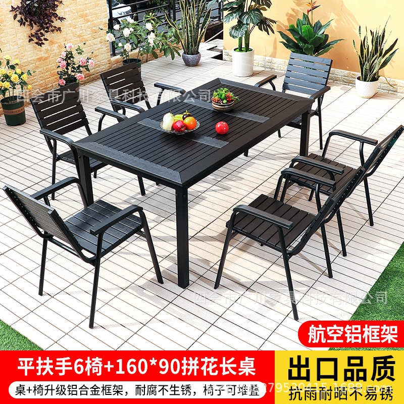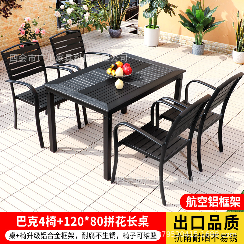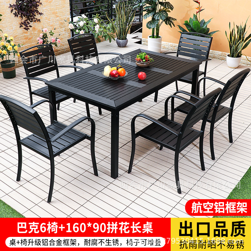户外庭院塑木桌椅现代简约防腐木室外家商用餐茶金属休闲桌椅组合