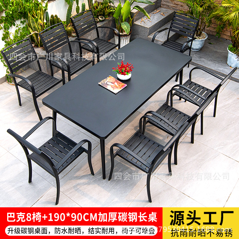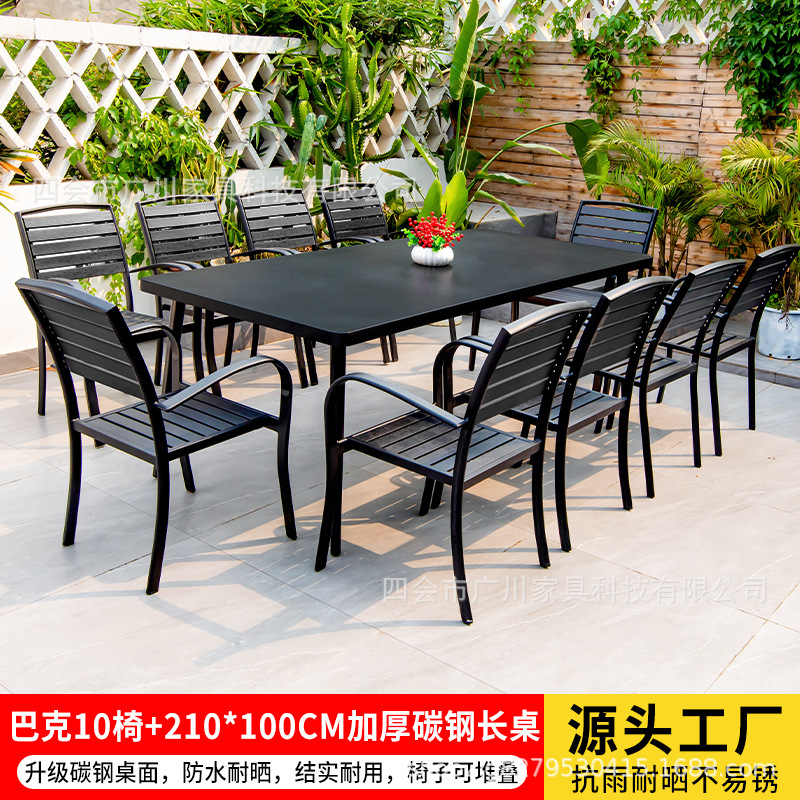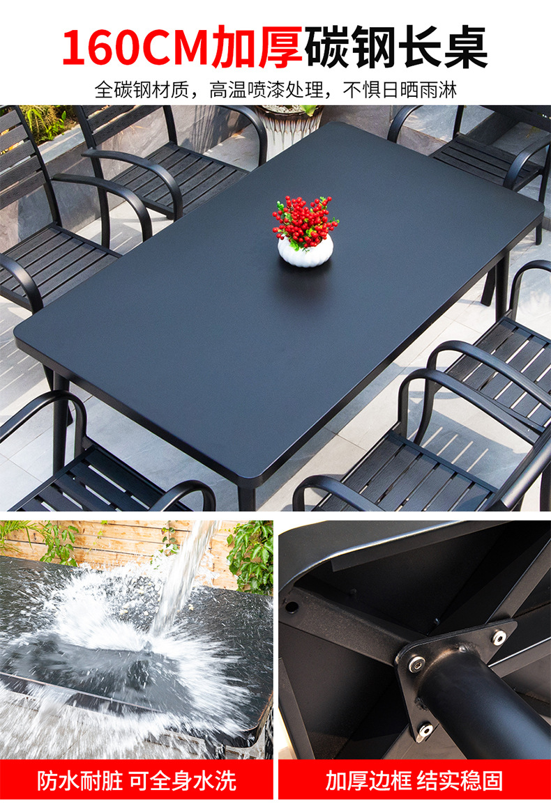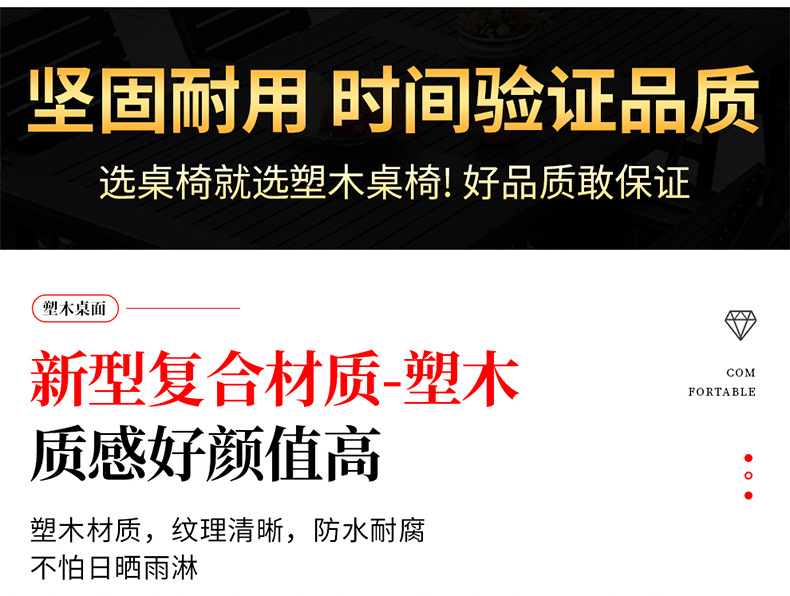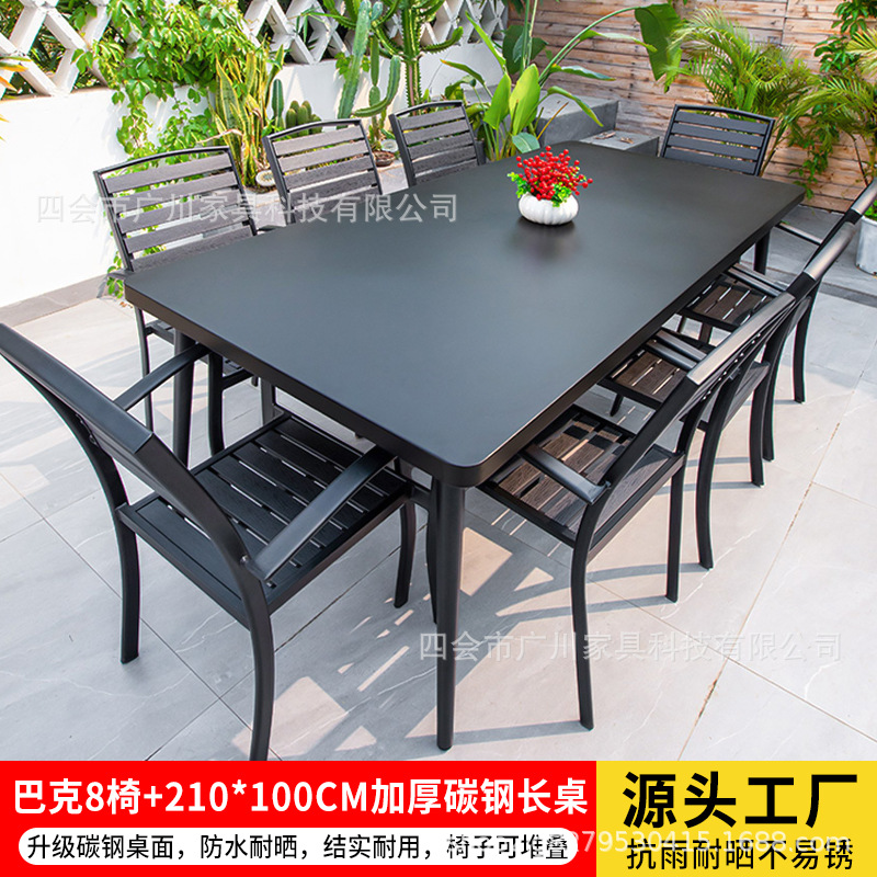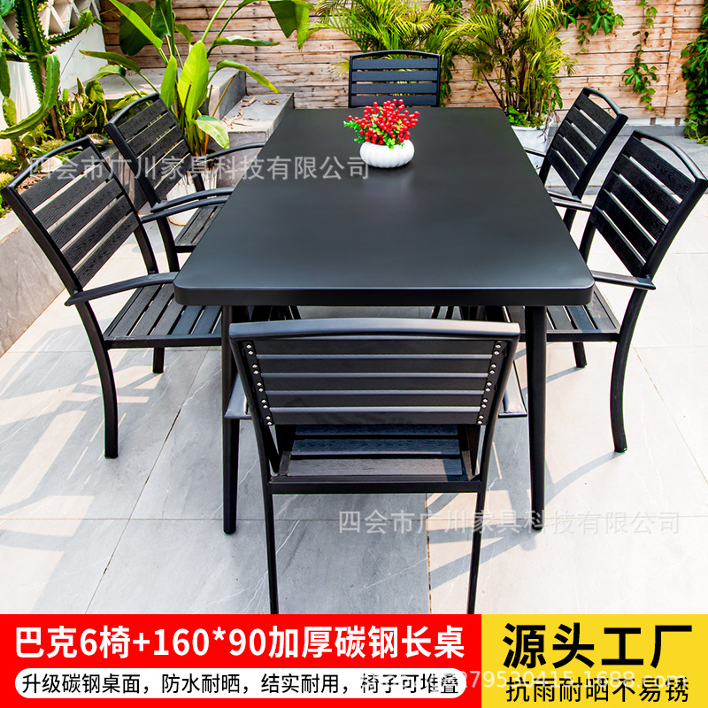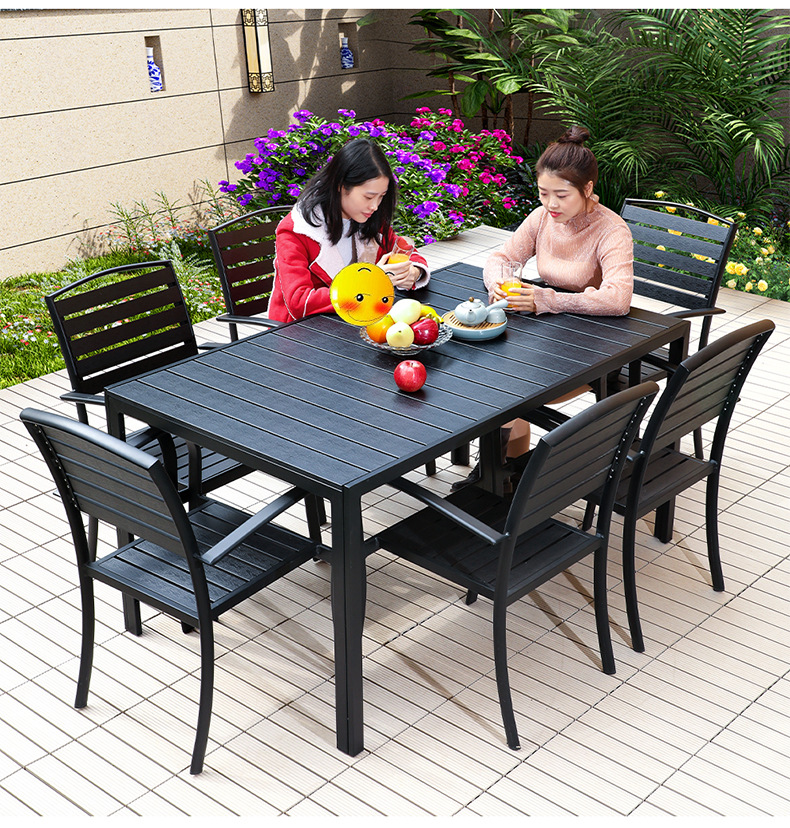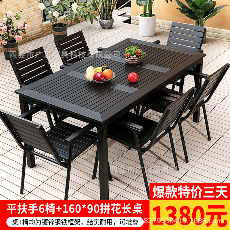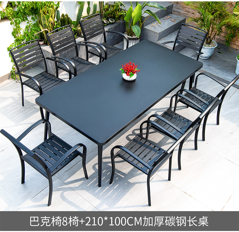 户外庭院塑木桌椅现代简约防腐木室外家商用餐茶金属休闲桌椅组合