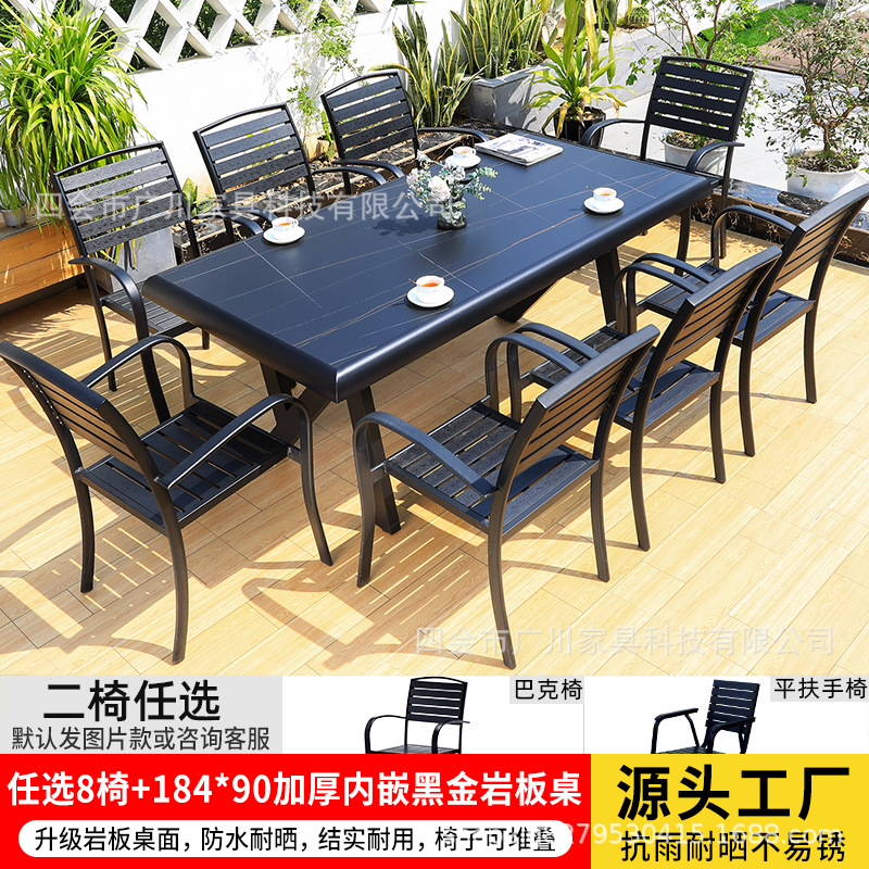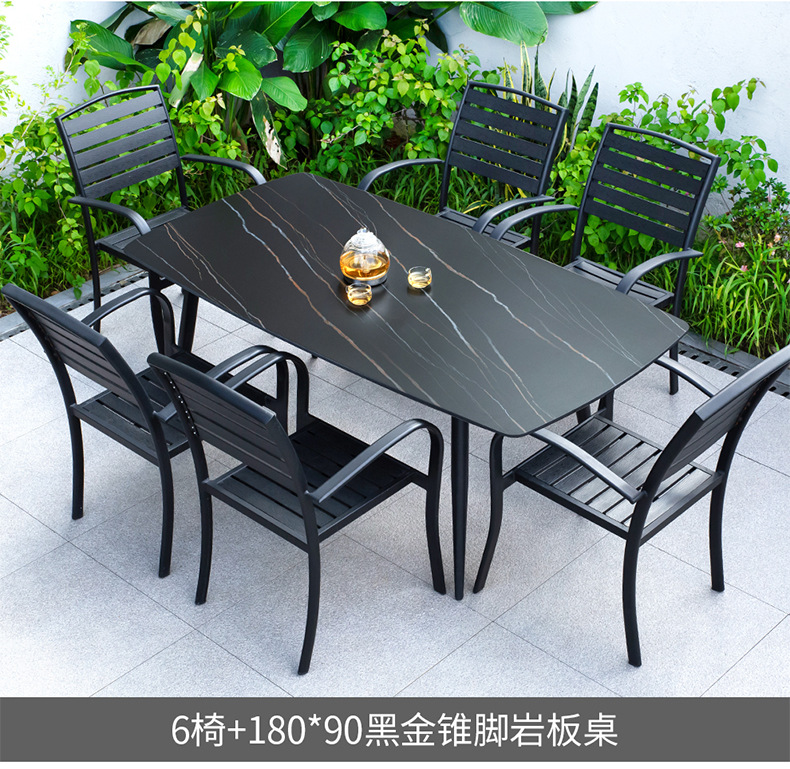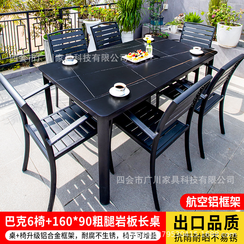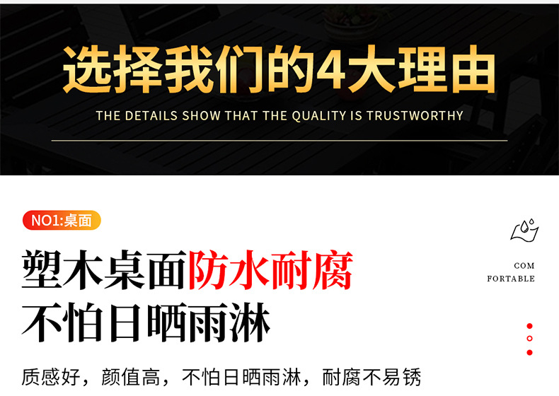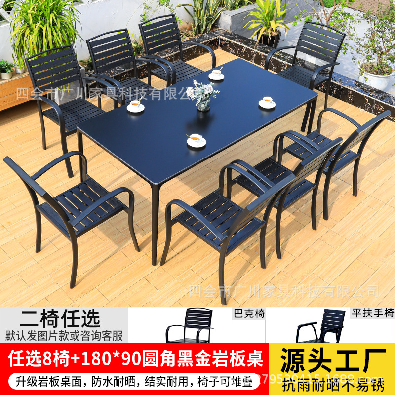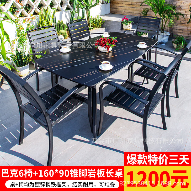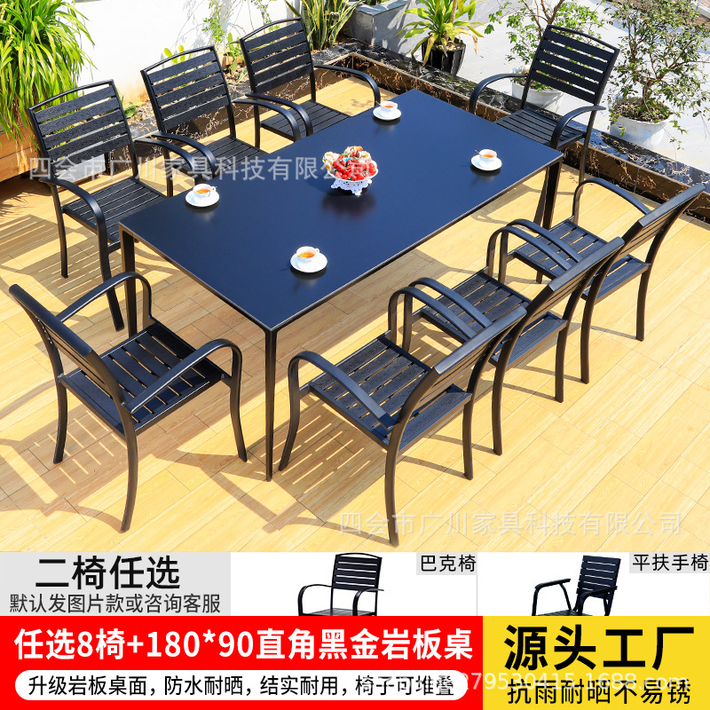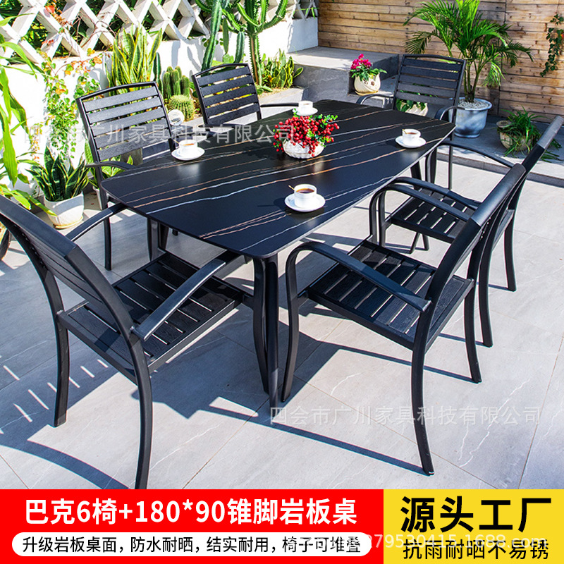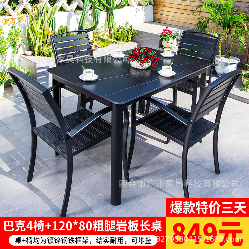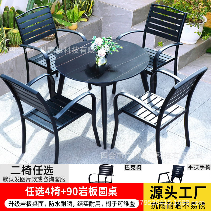 户外庭院塑木桌椅现代简约防腐木室外家商用餐茶金属休闲桌椅组合