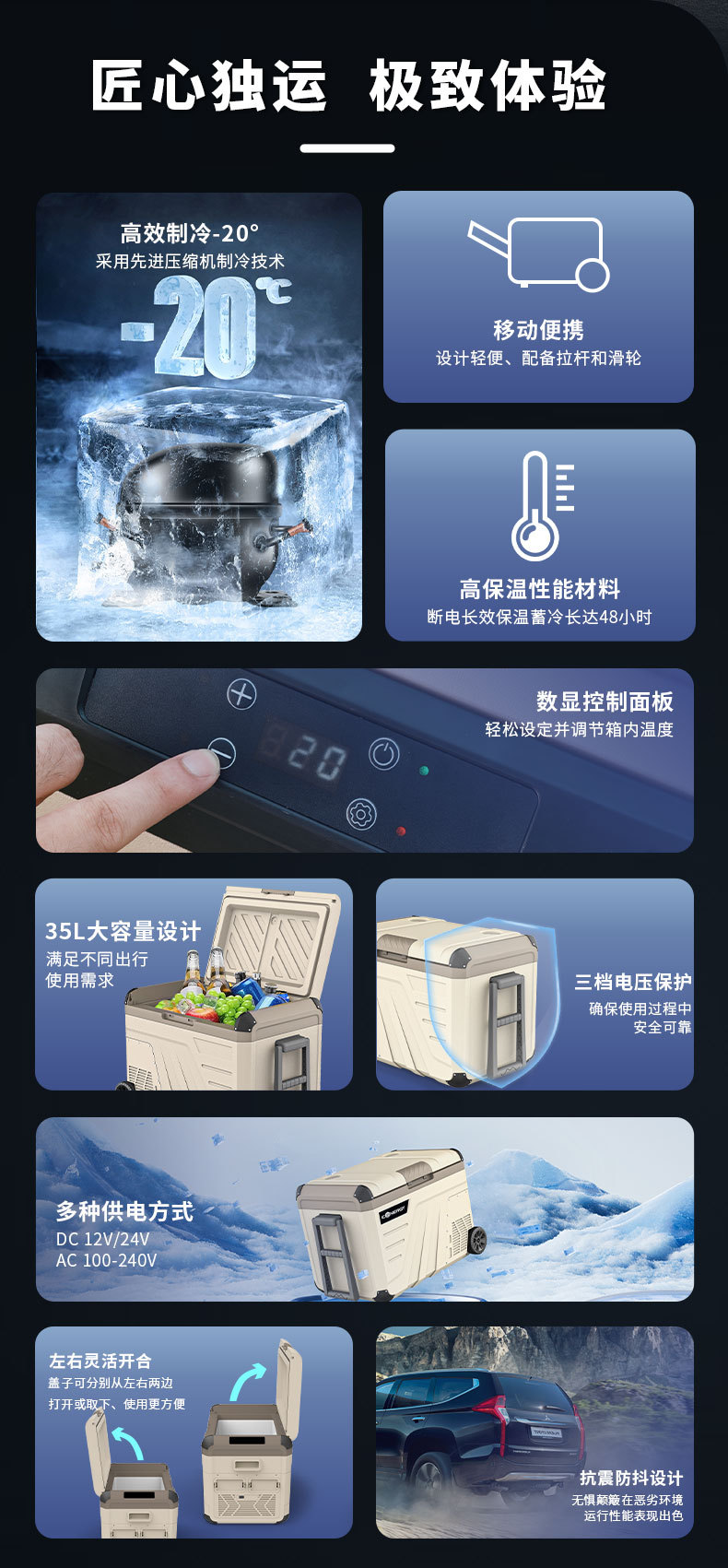 ✅ 35리터 휴대용 반트레일러 트럭 주차 냉장고 야외 캠핑용 12v24v 냉동 이동식 차량용 냉장고