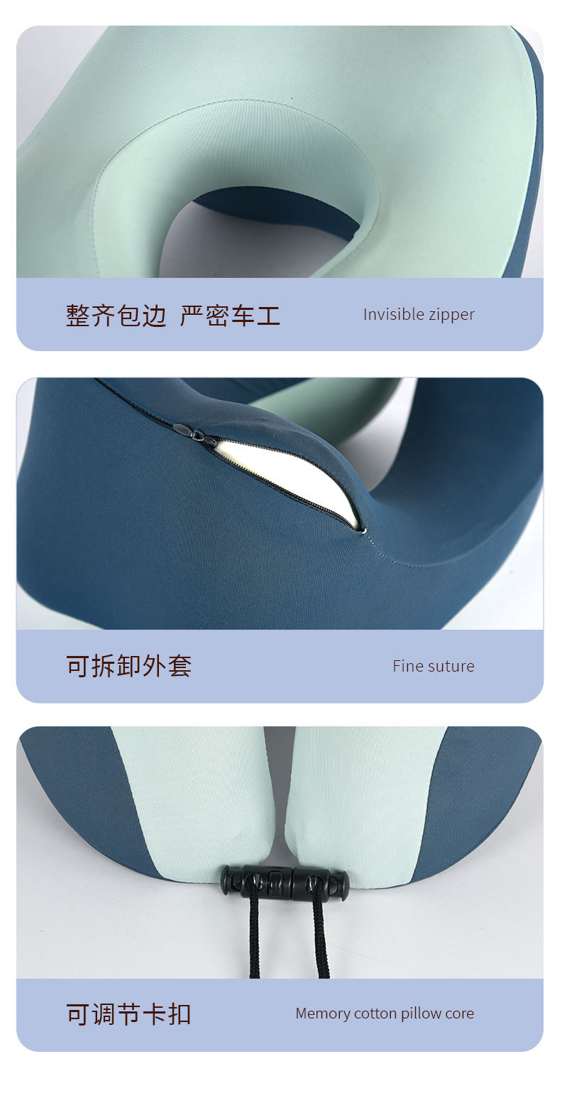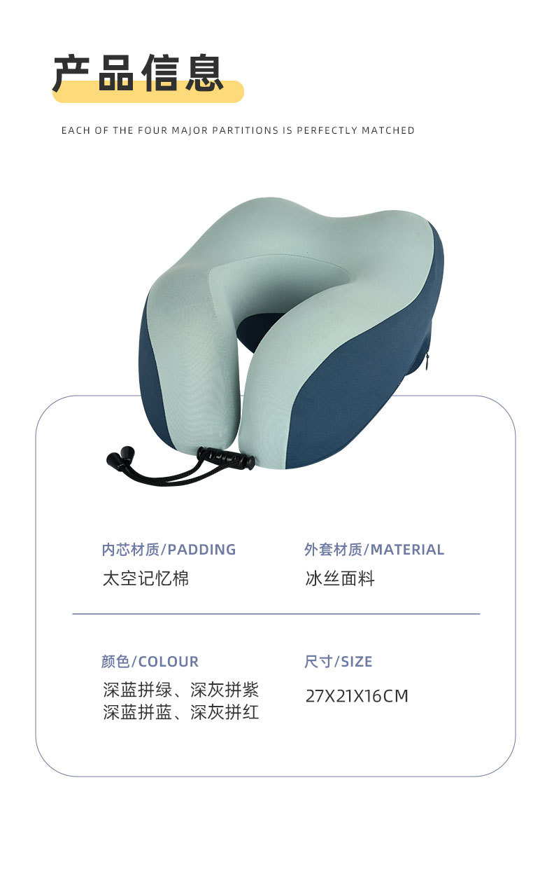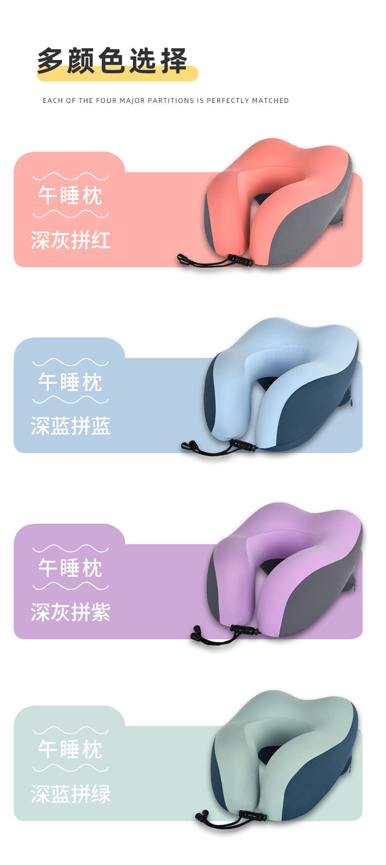 U자형 베개 메모리폼 아이스 실크 목베개 휴대용 특수 경추베개 사무실 낮잠베개 출장 여행 목보호베개