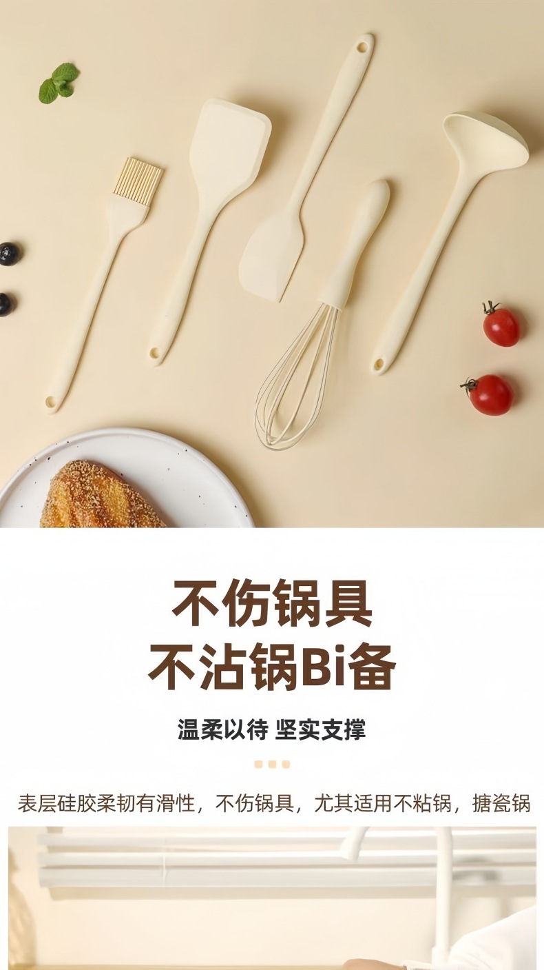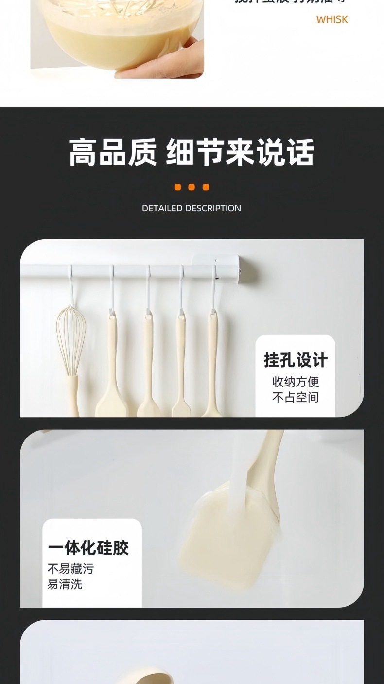 • 흰색 식품 보충 실리콘 주걱, 오일 브러시 주걱, 계란 비터 [5종 세트]