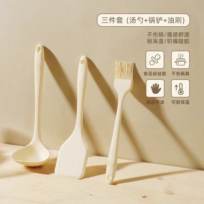 • 흰색 식품 보충 실리콘 주걱과 스푼 오일 브러시 [3종 세트]