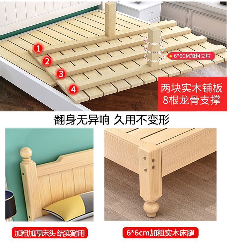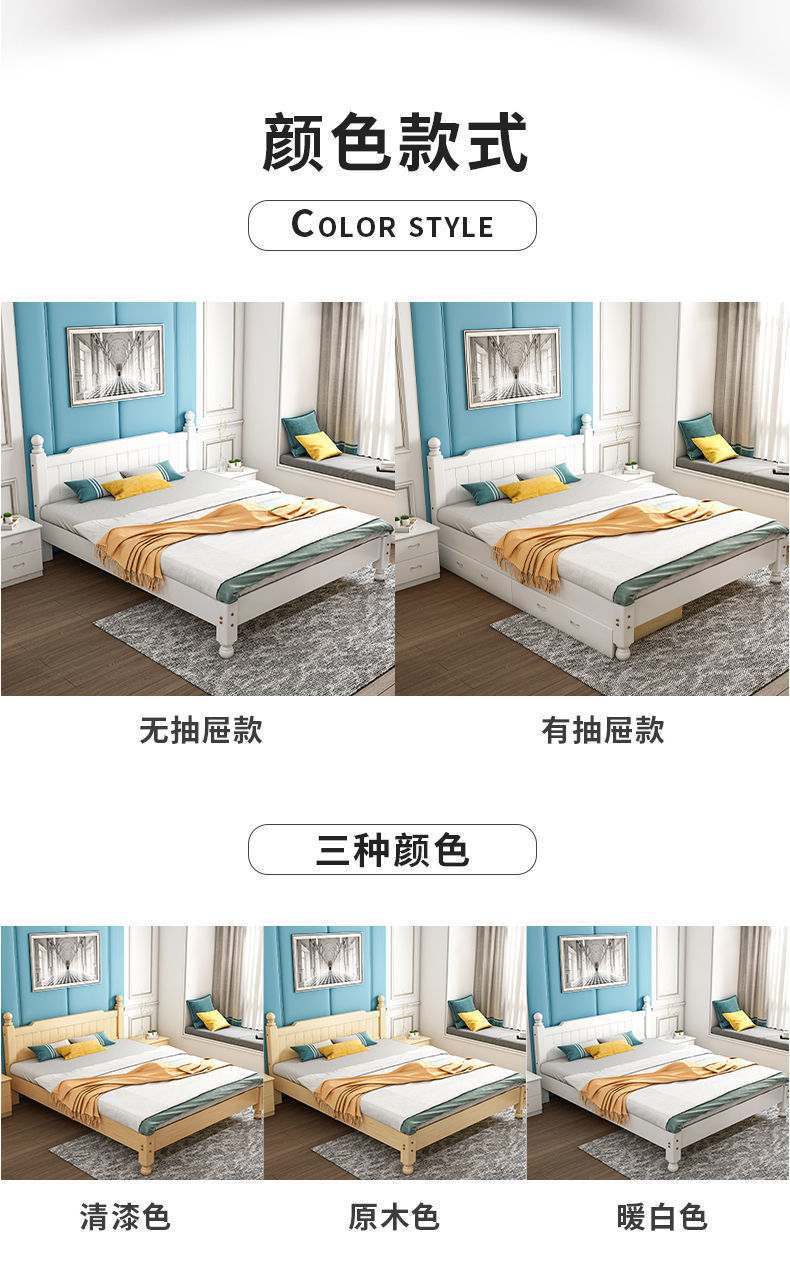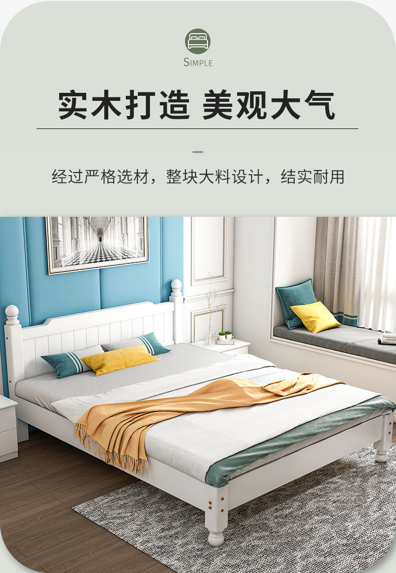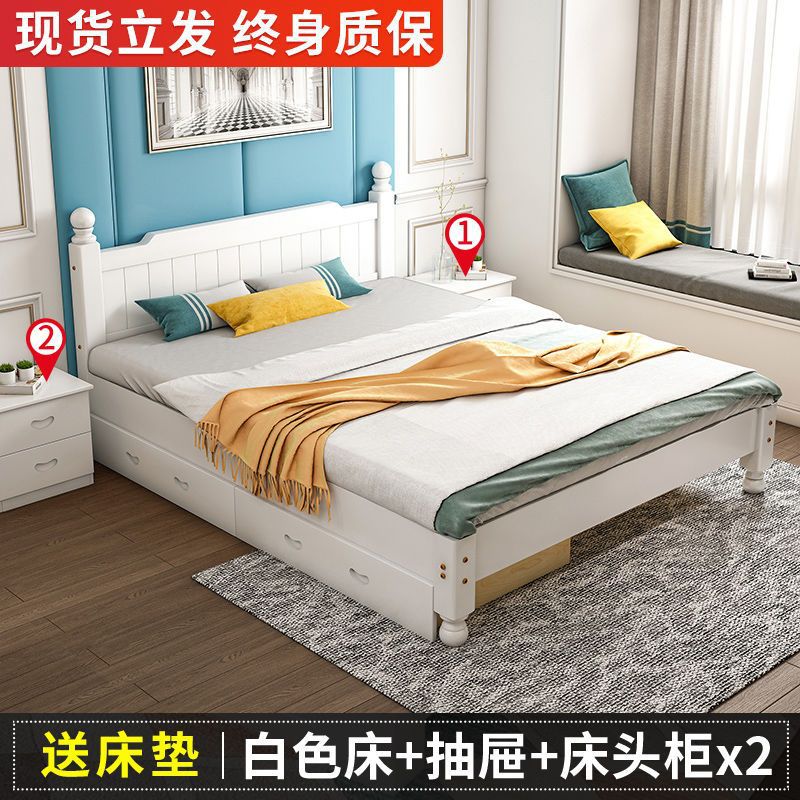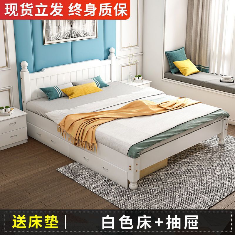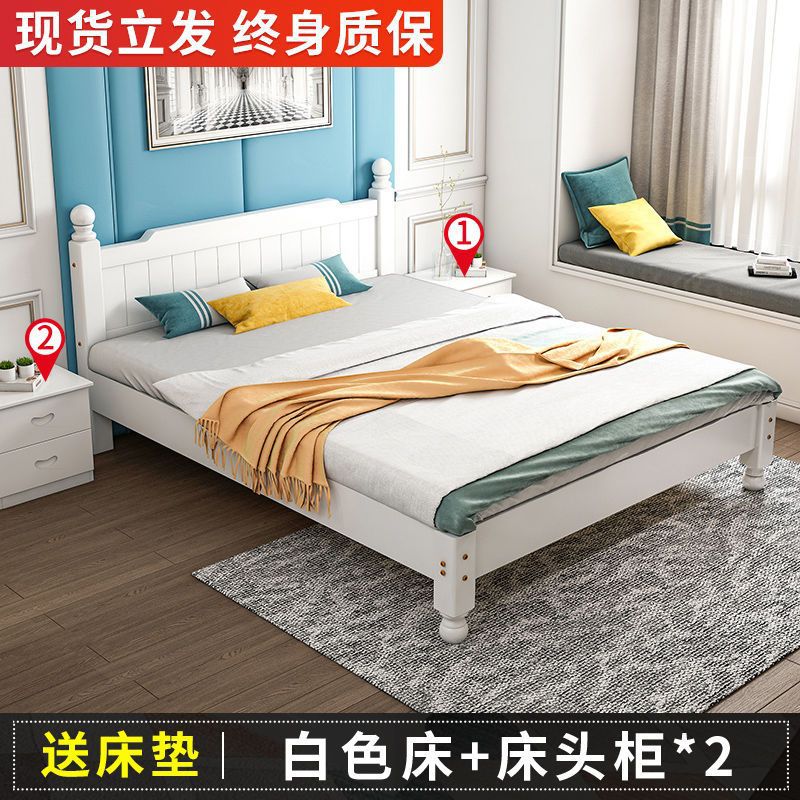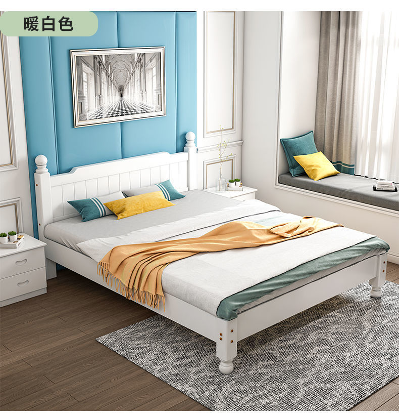 단단한 나무 침대 현대 간단한 1.8 m 더블 침대 흰색 1.5 m 싱글 침대 1 m 경제적 인 가정용 간단한 침대스토어 가기