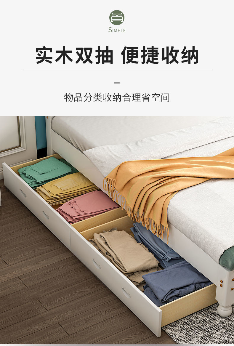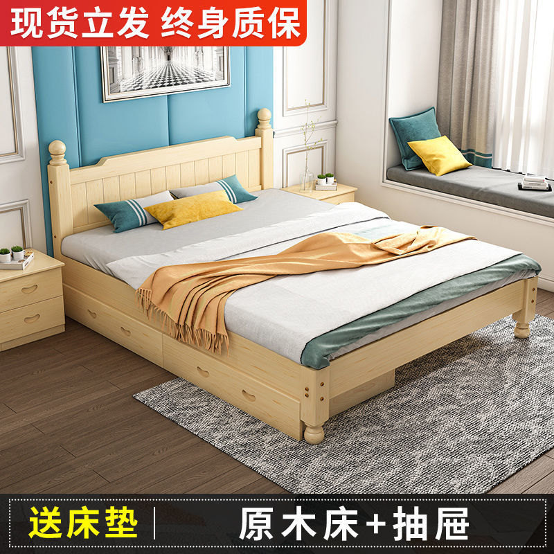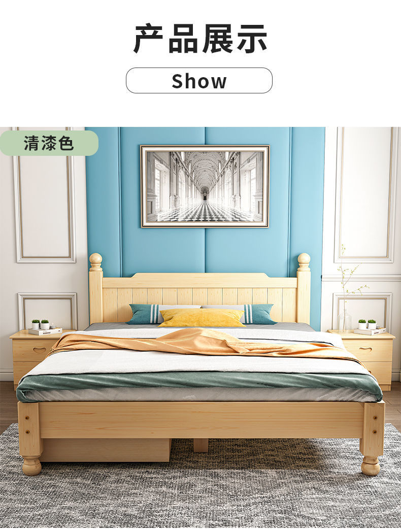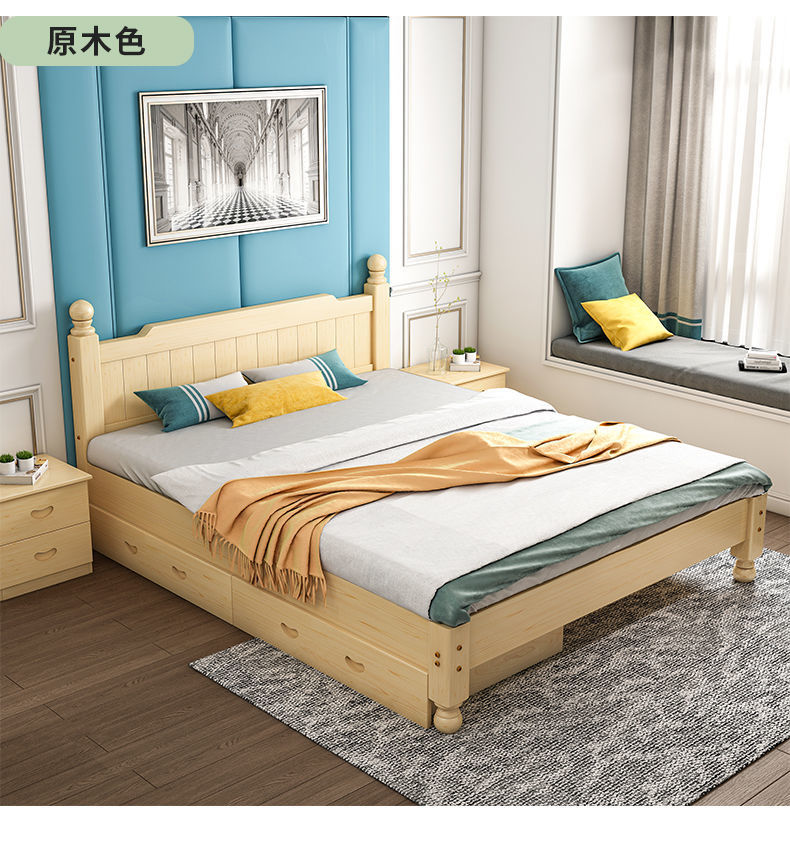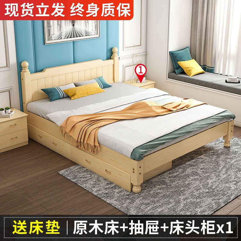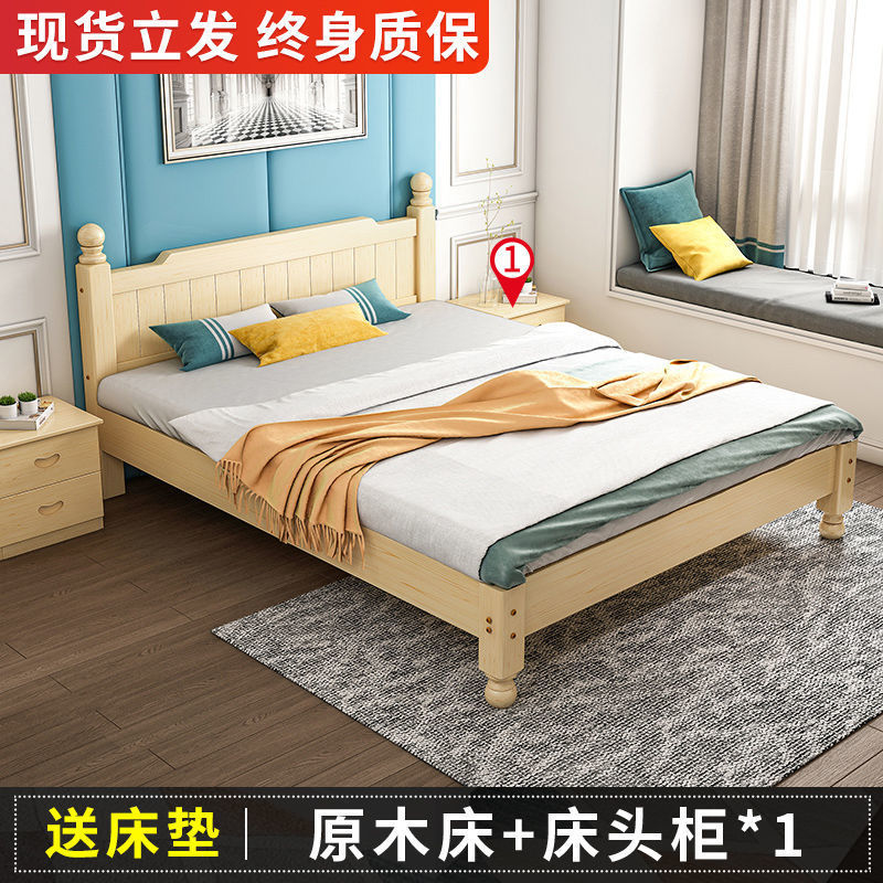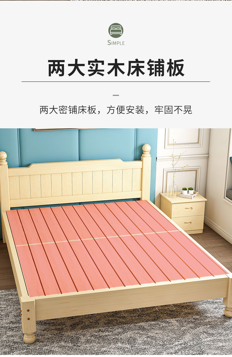 단단한 나무 침대 현대 간단한 1.8 m 더블 침대 흰색 1.5 m 싱글 침대 1 m 경제적 인 가정용 간단한 침대스토어 가기