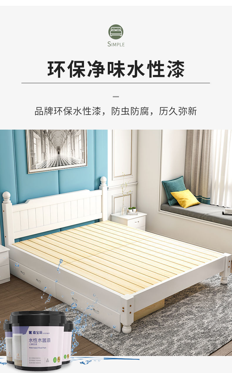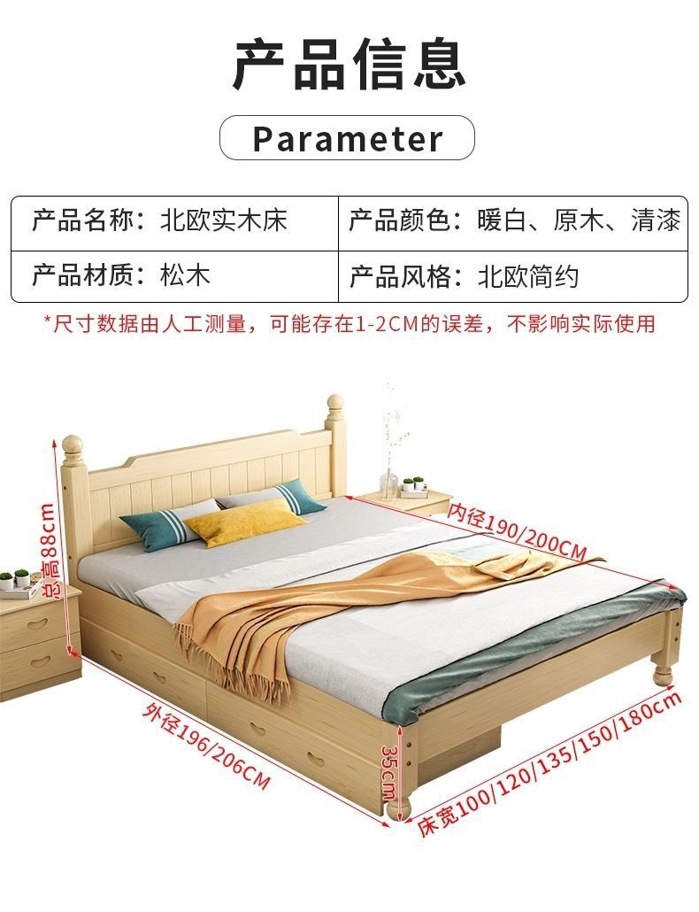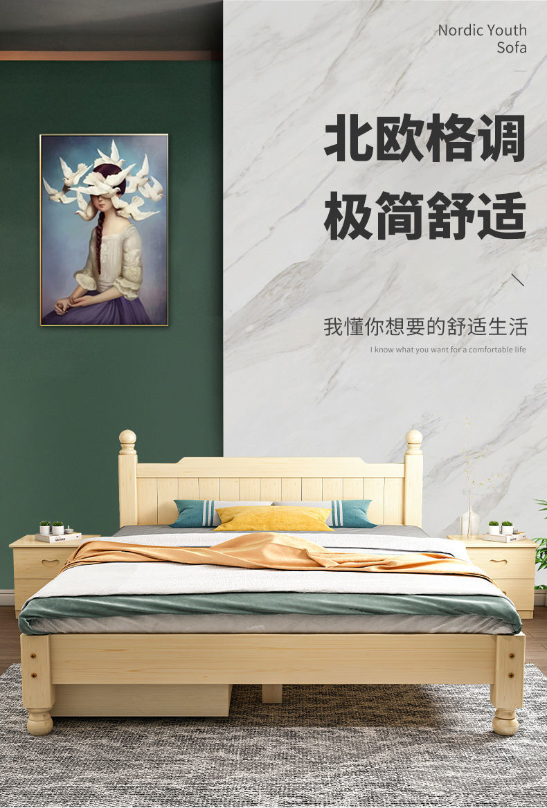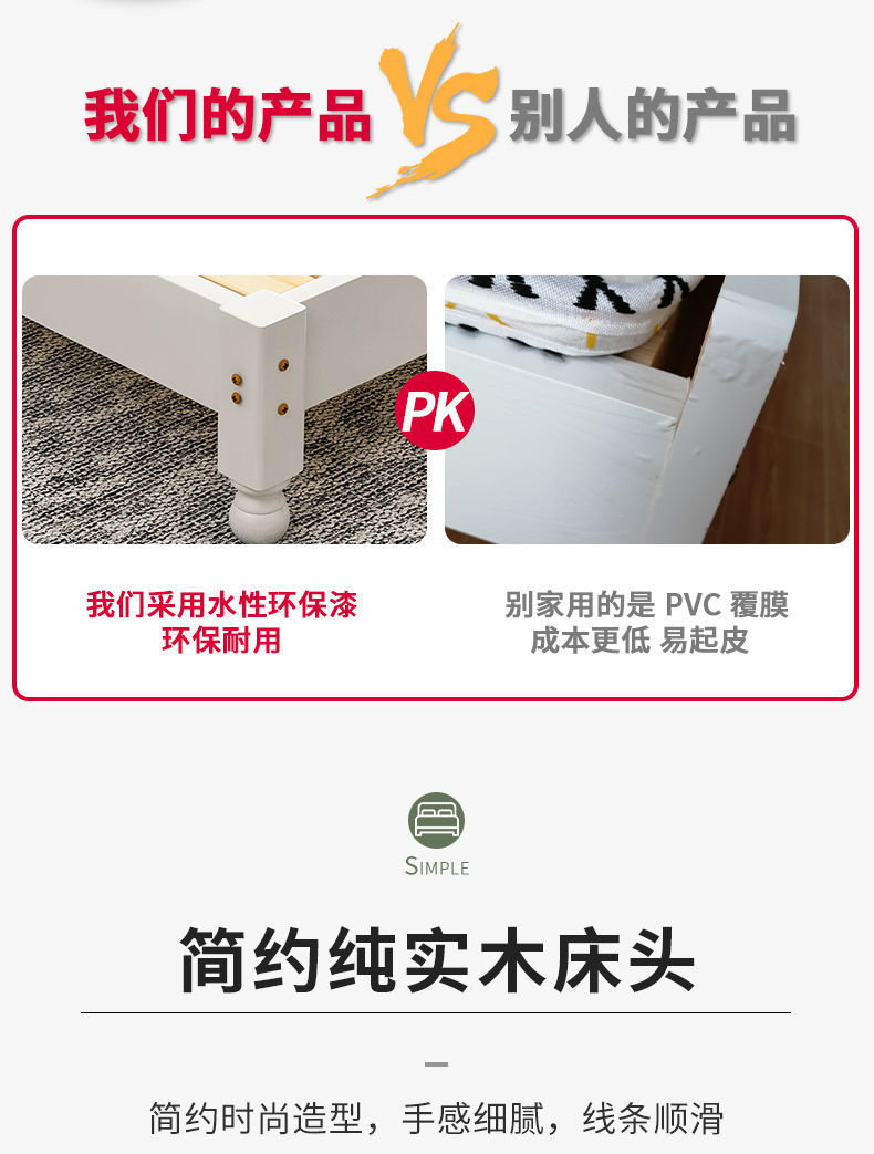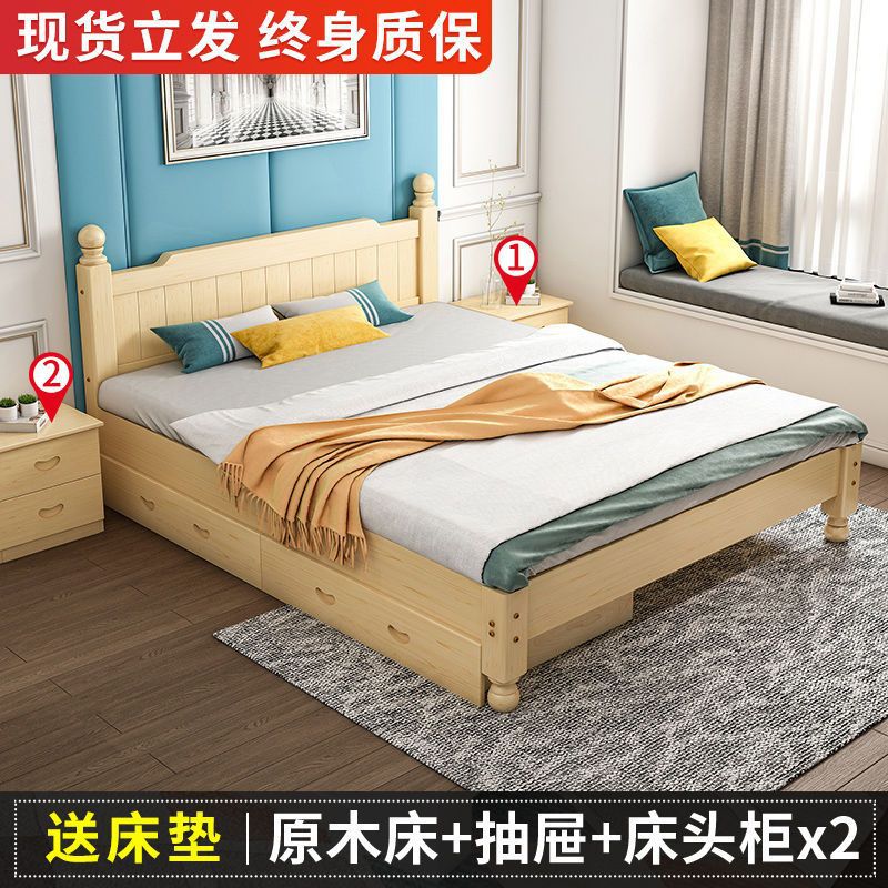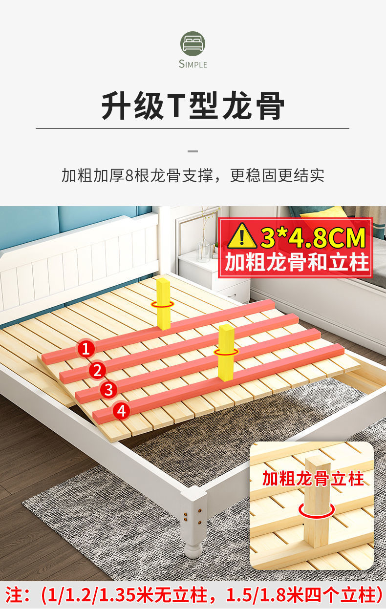 단단한 나무 침대 현대 간단한 1.8 m 더블 침대 흰색 1.5 m 싱글 침대 1 m 경제적 인 가정용 간단한 침대스토어 가기