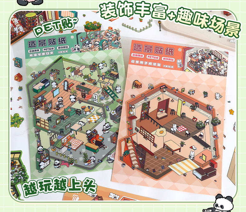 귀여운 대형 조경 스티커 만화 감압 소형 조경 스티커 3D 콜라주 DIY 스태킹 스티커스토어 가기