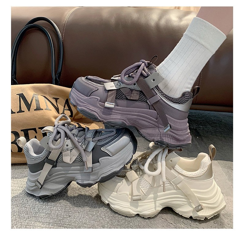 메쉬 토레 신발 여성 두꺼운 단독 퍼핀 2024 가을 새로운 올매치 작은 높이 증가 캐주얼 여성 신발스토어 가기