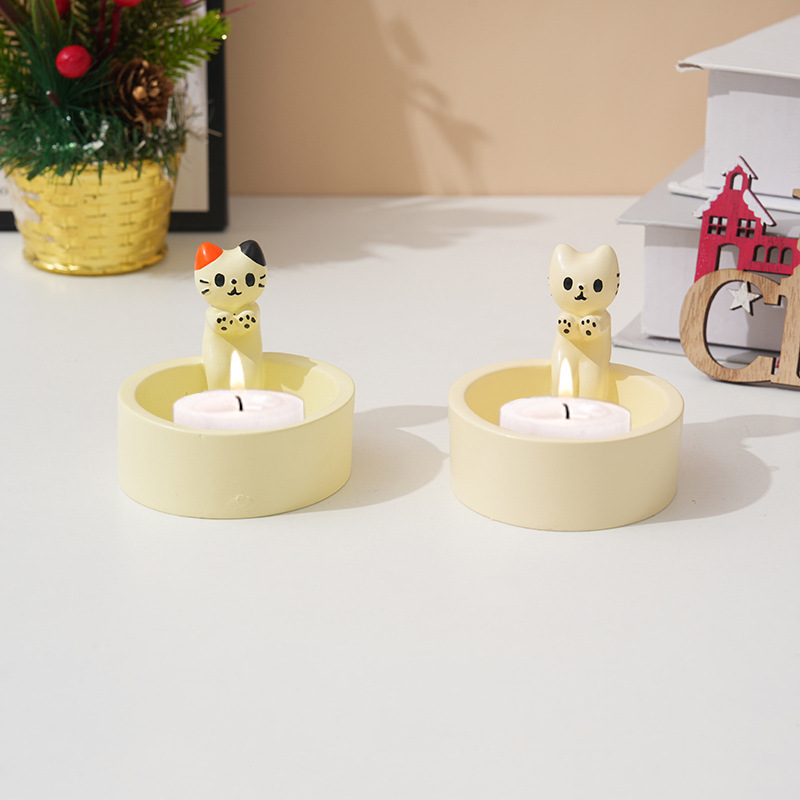 국경을 넘는 고양이 모양 캔들 홀더, 귀여운 캔들 디자인 장식품, 가정 및 정원용 레진 공예 만화스토어 가기