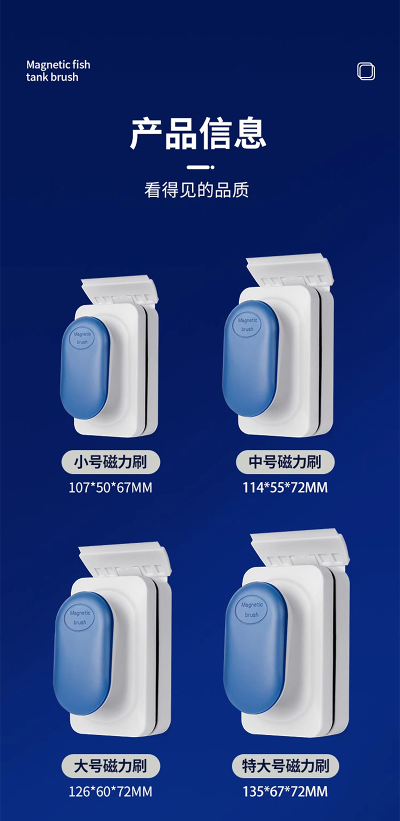 어항 마그네틱 브러시 양면 브러시 죽은 각도가 매달릴 수 없습니다 강한 자기 브러시 청소 조류 제거 유물 유리는 크고 중간 스몰 사이즈 닦습니다.